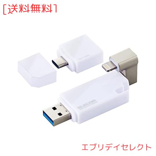 エレコム USBメモリ 128GB iPhone/iPad対応 [MFI認証品] ライトニング Type-C変換アダプタ付 ホワイト MF-LGU3B128GWH