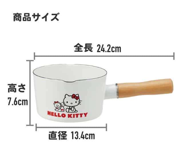 ホーロー ミルクパン KT&タイニーチャム ENMP2-596391 片手鍋 両口 13cm 小さめ 800ml 深鍋 IH ガスコンロ対応 ハローキティ スケーター