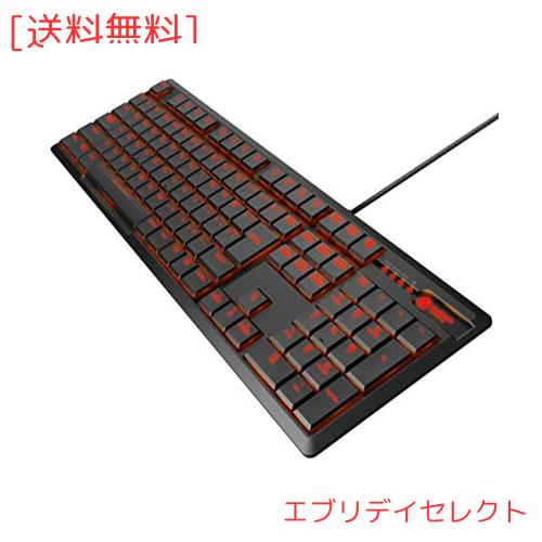 【 説明 】 ■ ガンシューティング系ゲーム(FPS)プレイに最適な“ARMAシリーズ”のフルサイズゲーミングキーボードです。 ■ 5000万回の耐久試験をクリアするキーストローク2.6mm、アクティブポイント1.5mmの独自設計薄型メカニカルスイッチを採用しています。 ■ 当社従来品よりも約25%早いキー入力(※)が可能で、素早い反応が要求されるFPSゲームにおいて高いパフォーマンスを発揮します。 ※当社比 ■ FPSゲーム操作中に誤入力を防止するため、変換、無変換をなくし、スペースキーを可能な限り広くするオリジナル配列を採用しています。 ■ 専用ソフトウェアにて、全てのキー(※)に任意の機能を割り当てたり、誤操作しやすいキー機能を無効にするなど、高度なカスタマイズが可能です。 ※Fnキー、“ゲーミングモードキー”を除く通常キー ■ キーカスタマイズ、LED設定をキーボード本体に保存できるメモリを搭載しています。一度ソフトウェアで設定すればキーボード本体が記憶し、専用ソフトウェアをインストールしていないパソコンでも設定通りに使用可能です。 ■ キーひとつひとつに赤色LEDを搭載しています。専用ソフトウェアで光り方、明るさなどをお好みに合わせて設定可能です。 ■ 全キーを高度にカスタマイズできるゲーミングモードと、文章入力用に通常のキーボード配列として動作するチャットモードを搭載し、“ゲーミングモードキー”を押すだけで瞬時にモード切替が可能です。 ■ 全キーロールオーバーに対応し、全てのキーの同時入力に対応しています。複雑な同時押し操作が必要なゲームでも、操作を取りこぼすことなく正確に入力できます。 ■ ゲーム内での数値入力やチャット等に便利なテンキーが付いています。 ■ ケーブルは断線しにくいメッシュ被膜を採用した高耐久仕様です。 ■ ケーブルには、電子ノイズを削減し、通信の安定性を向上させるフェライトコアを搭載しています。