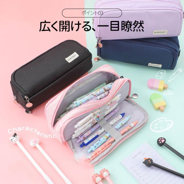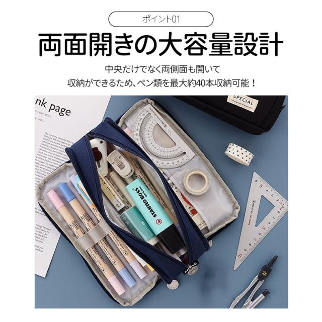 ペンケースは両側から開くことができ、文房具がはっきりと見えるので、取りやすくなります。