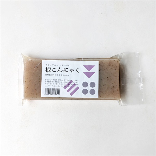 こんにゃくの約90%は生芋からではなく精製されたこんにゃく粉から作られていますが、本商品は作付けから三年の年月を経てできた自然栽培の蒟蒻芋を生の状態で使用して造られています。