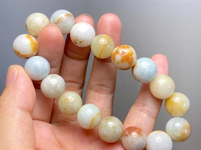 B23-66 一点物 大粒 黄翡翠 13.0mm ミャンマー産 天然本翡翠 ブレスレット