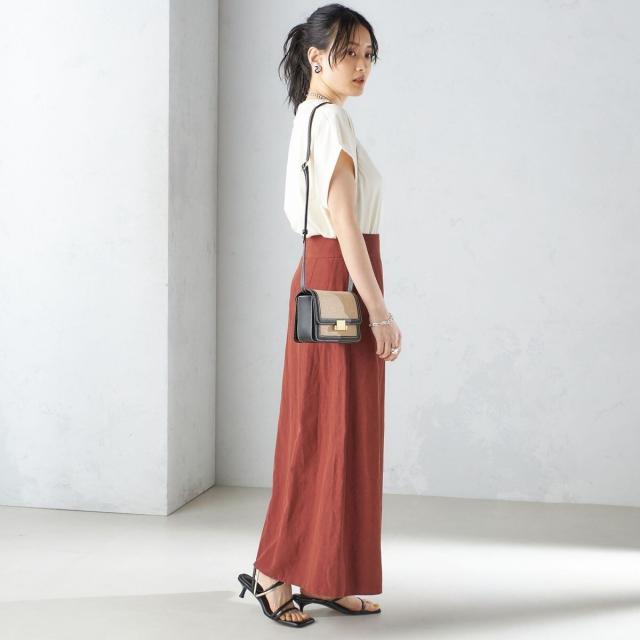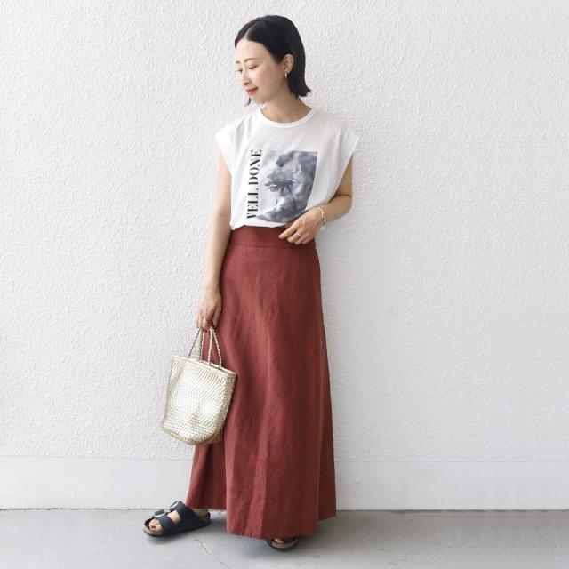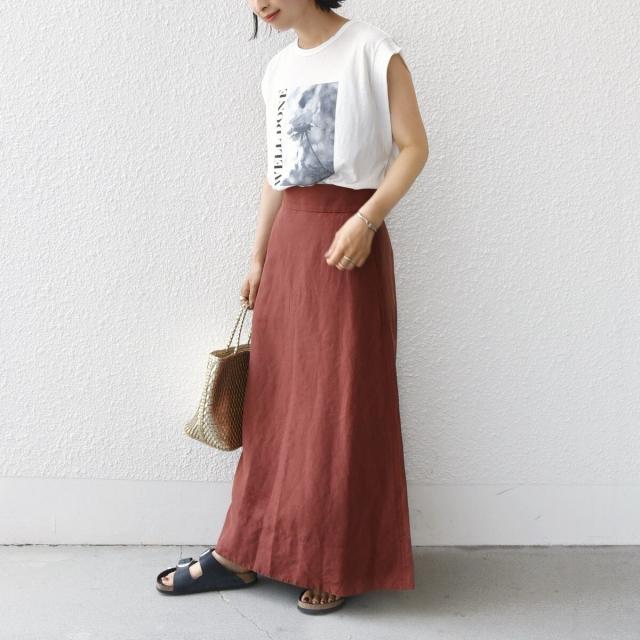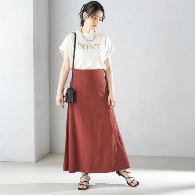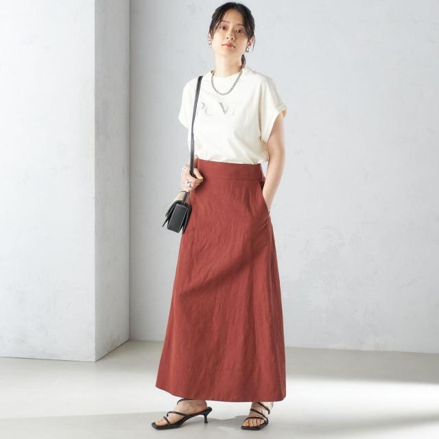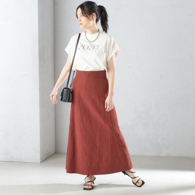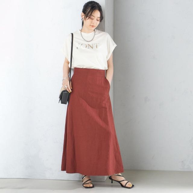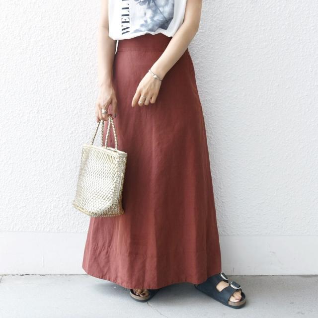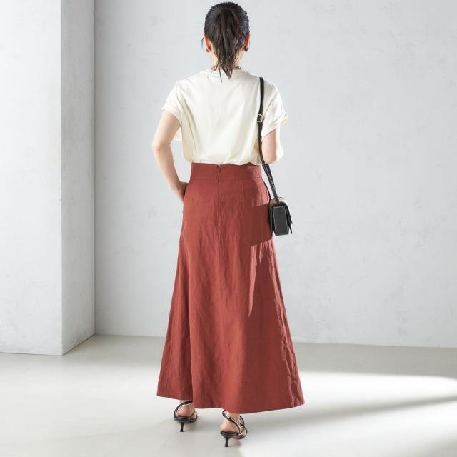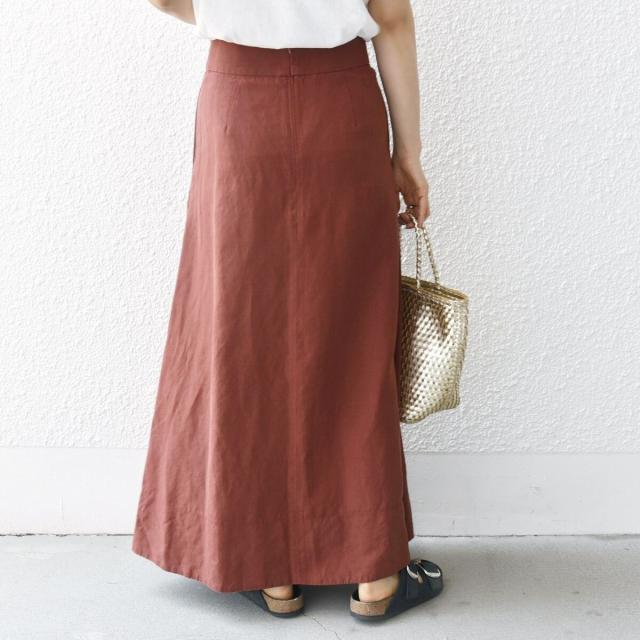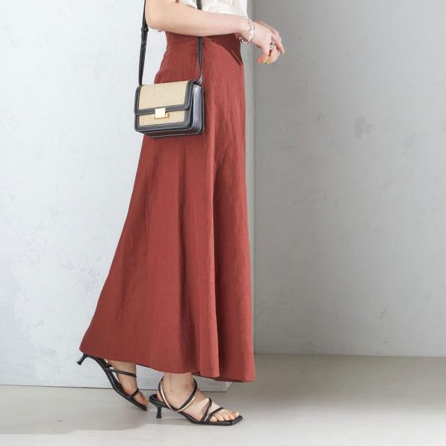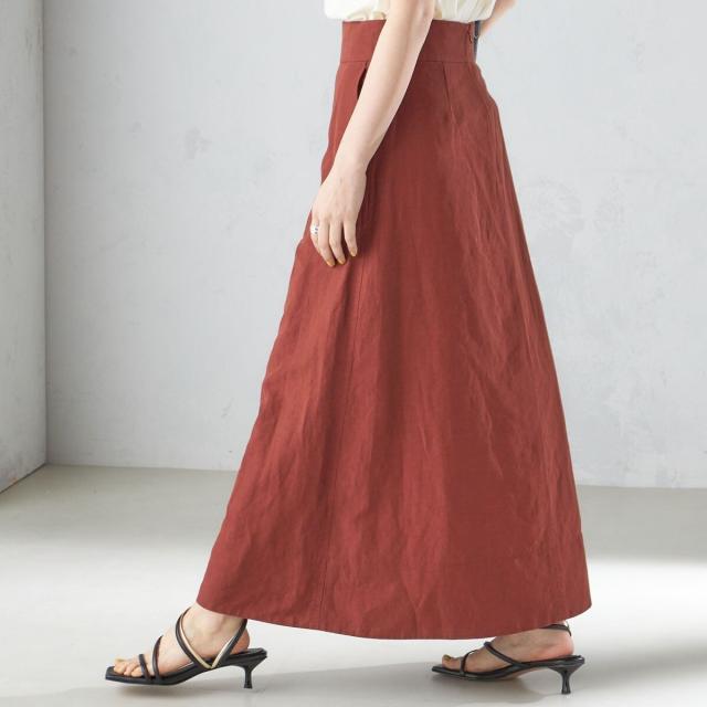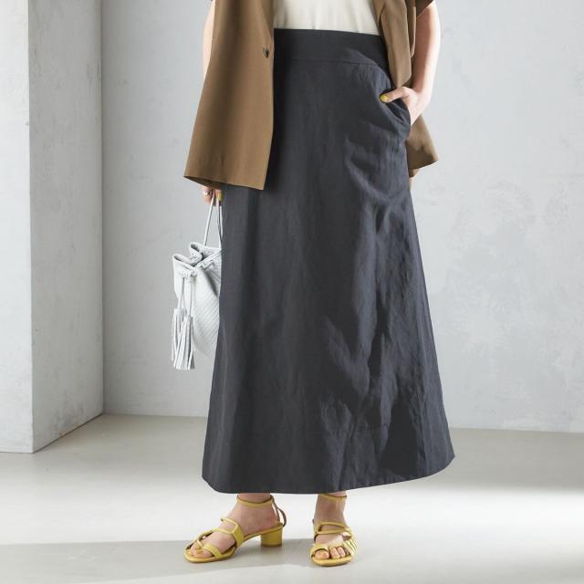 〈手洗い可能〉麻混 フレア マキシ スカート