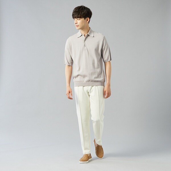 サイドゴアのデザインをしっかり見せ、かかと部分にレザーのパッチを当てることでカジュアル過ぎない、こなれた印象に。