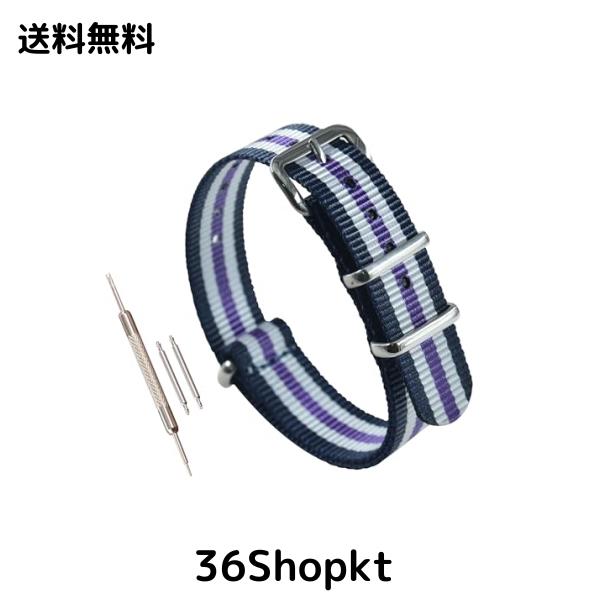 [MZBUTIQ] 12mm 青/白/紫 薄いナイロン タイプ 腕時計ベルト替えバンド 研磨バックル