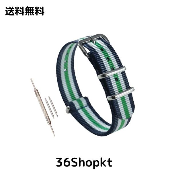 [MZBUTIQ] 12mm 青/白/緑 薄いナイロン タイプ 腕時計ベルト替えバンド 研磨バックル