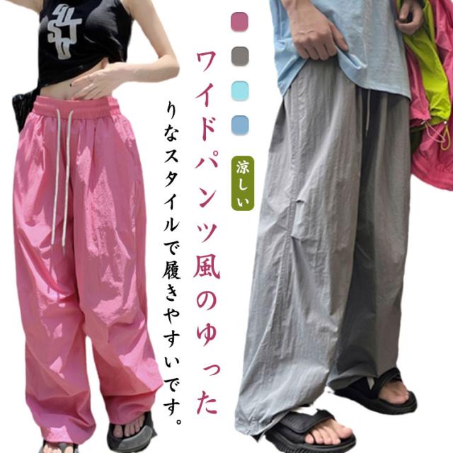 ワイドパンツ 長ズボン レディース イージーパンツ カーゴパンツ カラーパンツ ゆったり カジュアル ボトムス 大きいサイズ ストレート ハイウエスト 無地 女性用 春 秋 冷感パンツ ひんやり 通気性 涼しい 薄手 夏物 速乾 ウエストゴム 部屋着