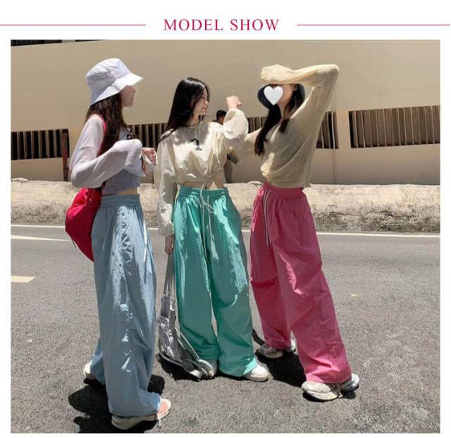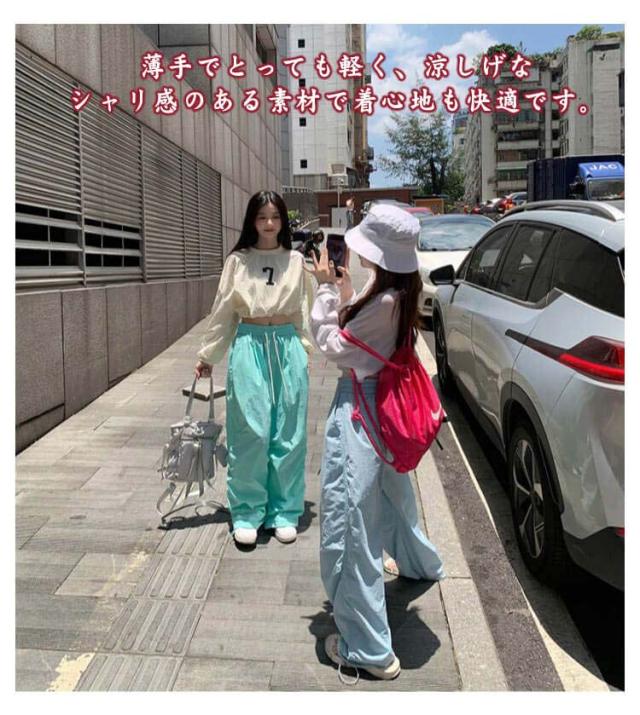 | ワイドパンツ風のゆったりなスタイルで履きやすいです。 薄手でとっても軽く、涼しげなシャリ感のある素材で着心地も快適です。春夏に適用するロングパンツ。 薄地のポリエステル生地を採用して、窮屈感なく、速乾性に優れいています。 ゴムウエスト、調整可能な紐が付き、働きやすくて着用便利です。 無地のべジュー、ピンク、ネイビー、Tシャツ、カーディガン、ジャケット等、いろんなトップスとも相性いいです。 | |