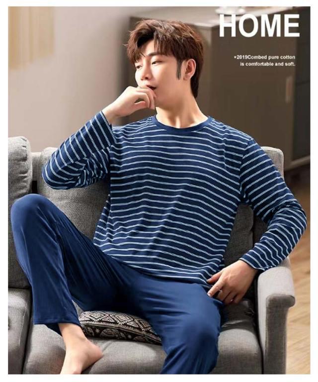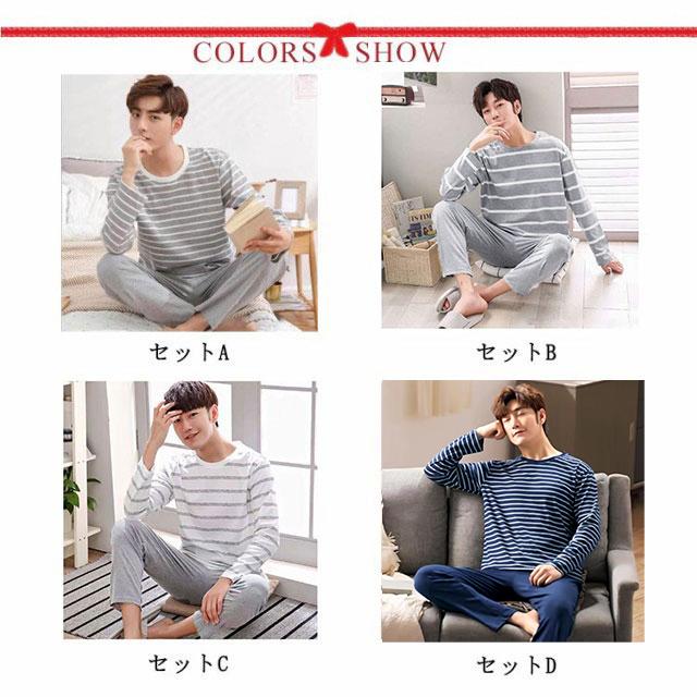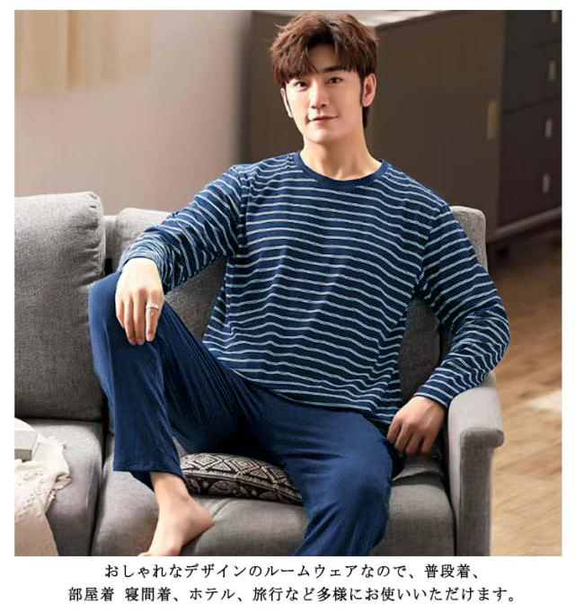 ルームウェア メンズ 上下セット 大人 紳士 長袖Tシャツ 長ズボン 薄手 ボーダー柄 パジャマ お洒落 男性 父の日 部屋着 寝間着 大きいサイズ 春夏 秋用 送料無料