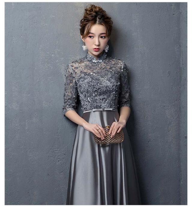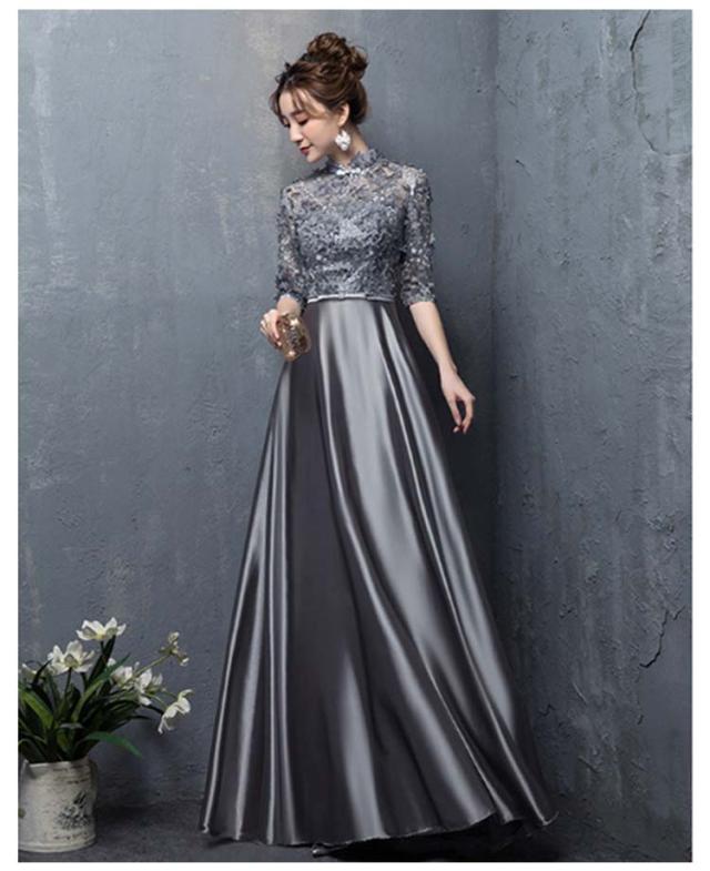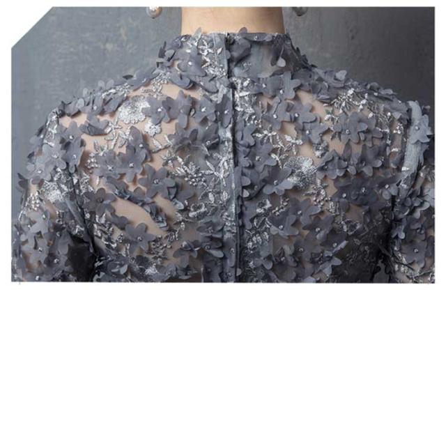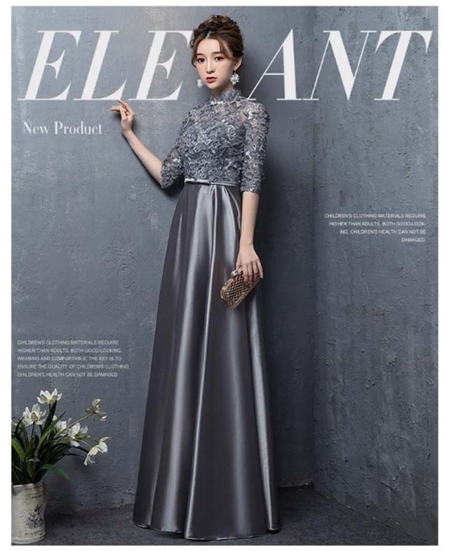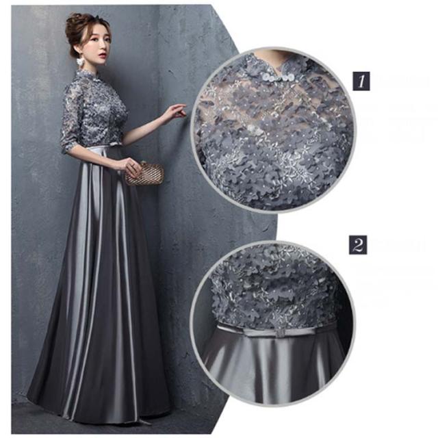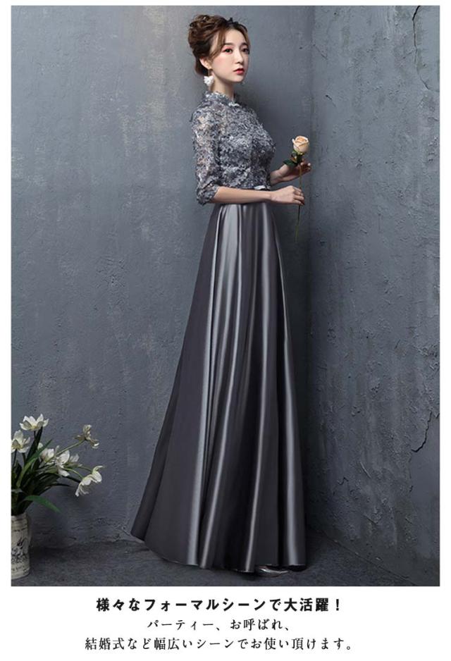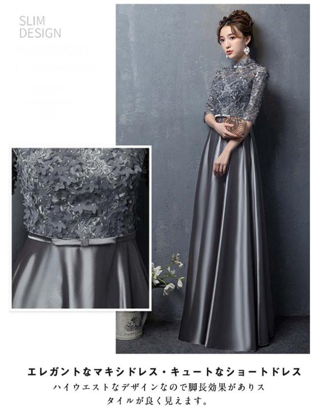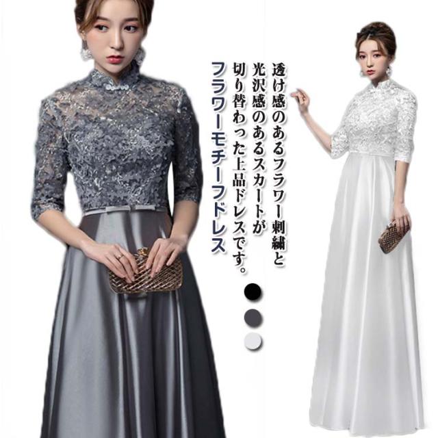 パーティードレス 結婚式 ドレス ワンピース レディース 二次会 お呼ばれ パーティー 大きいサイズ エレガント フォーマル マキシ丈 七分丈 ウエストマーク フラワーモチーフ 刺繍 シースルー シアー 高級感 綺麗 お洒落 フェミニン