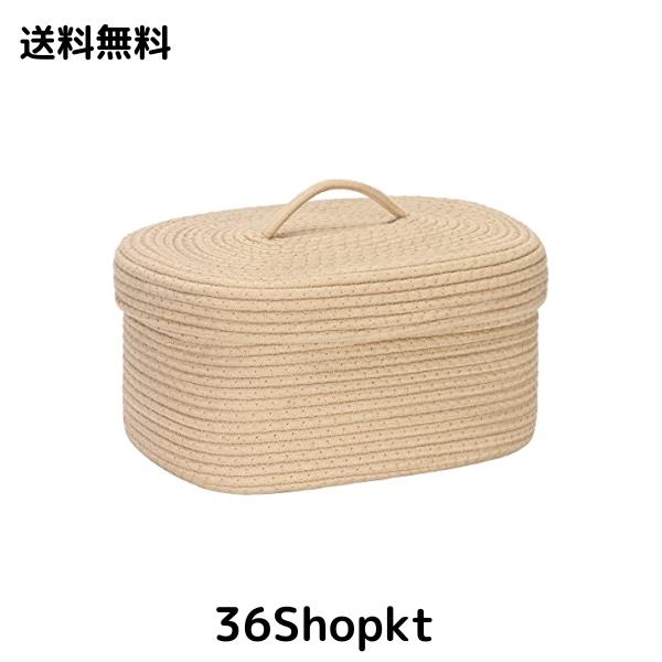 Sea Team コットンロープバスケット 収納バスケット 収納ボックス バスケット 洗濯かご ふたつき 折りたため ナチュラル コットンロープ