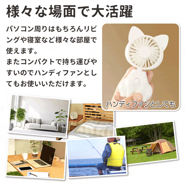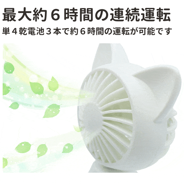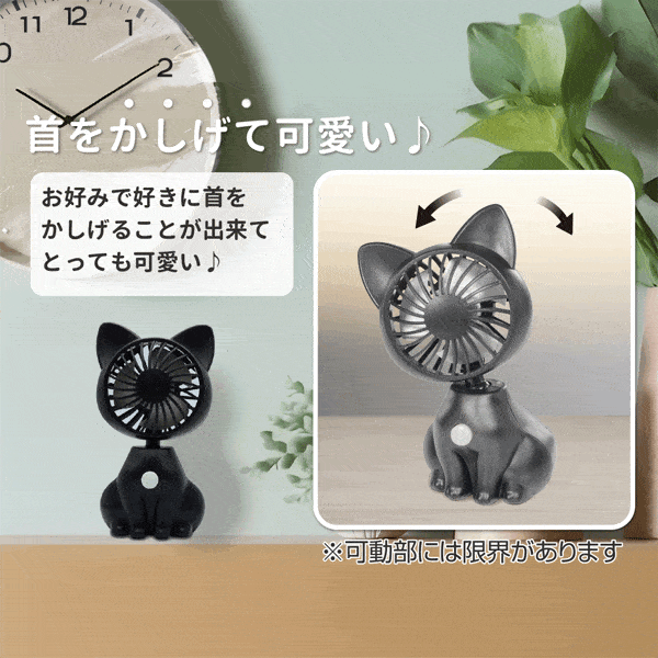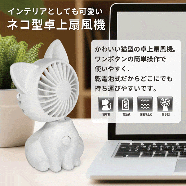 | インテリアとしても可愛い、 ネコ型卓上扇風機。 どこでも使える乾電池式。 | |