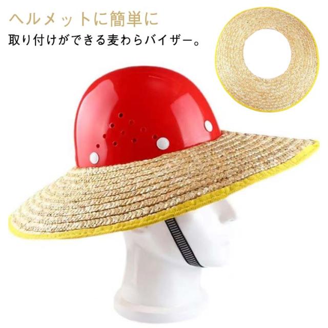 麦わらバイザー ヘルメット用日よけ ヘルメット取付用 屋外 熱中症対策 ヘルメットサンシェード ヘルメット取付用 工事現場 遮熱 建築現場 UVプロテクション 日差し除け ヘルメットなし