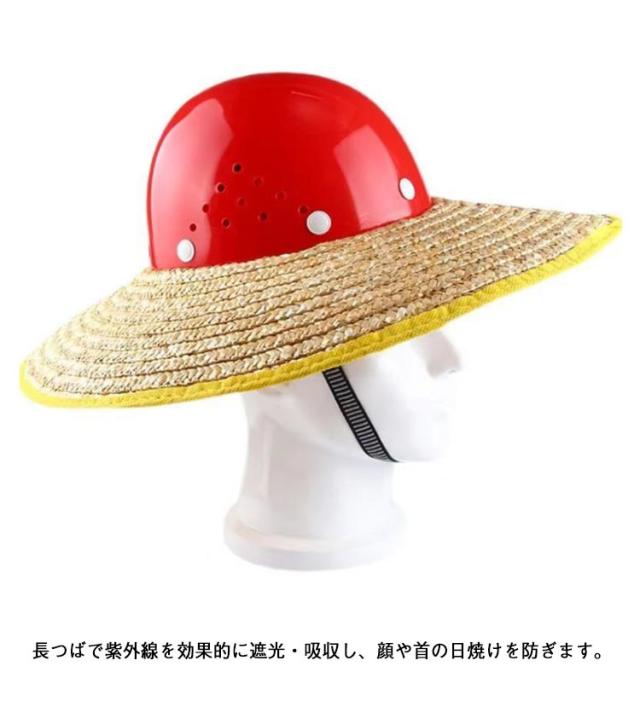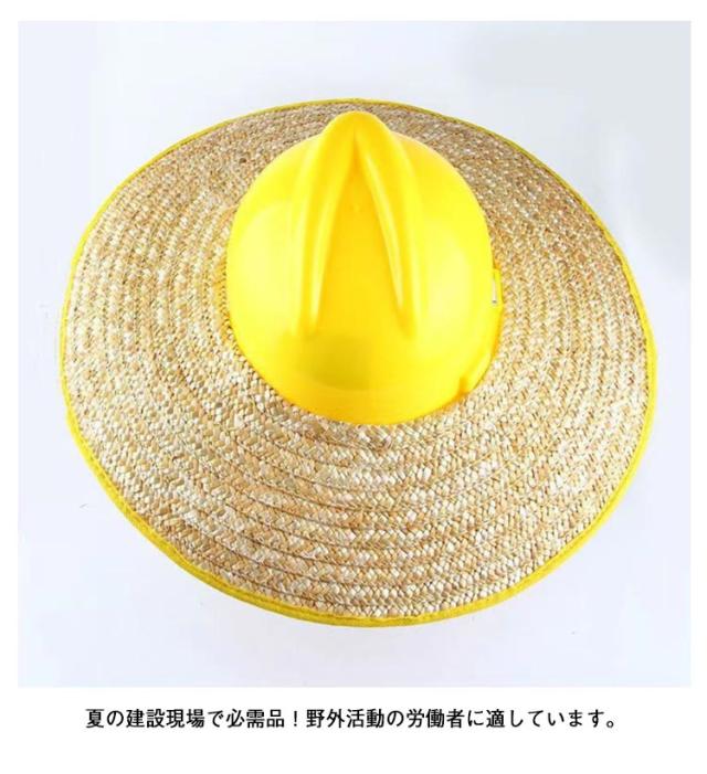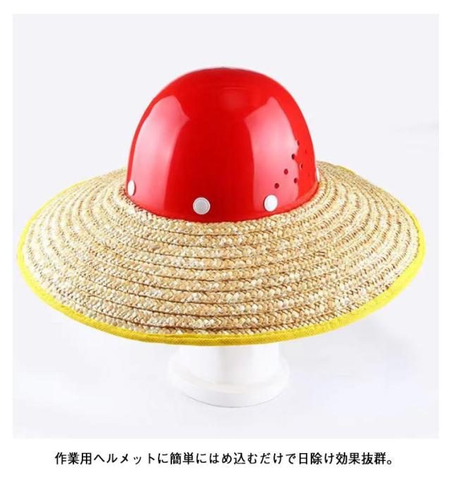 | ヘルメットに簡単に取り付けができる麦わらバイザー。 長つばで紫外線を効果的に遮光・吸収し、顔や首の日焼けを防ぎます。 作業用ヘルメットに簡単にはめ込むだけで日除け効果抜群。 夏の建設現場で必需品!野外活動の労働者に適しています。 | |