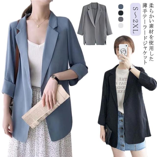 OL テーラードジャケット レディースアウター テーラードジャケット テーラード ジャケット ロング ライトアウター レディース 大人女性 ライトジャケット 結婚式 春秋 薄手 おしゃれ きれいめ カジュアル レディースジャケット 体型カバー 無地 シンプル 通勤