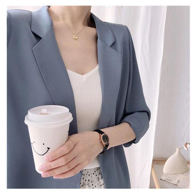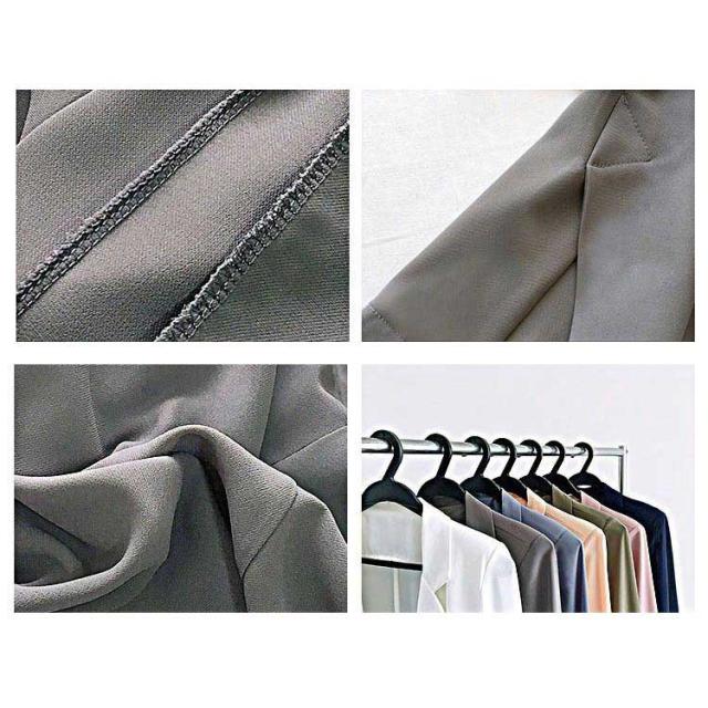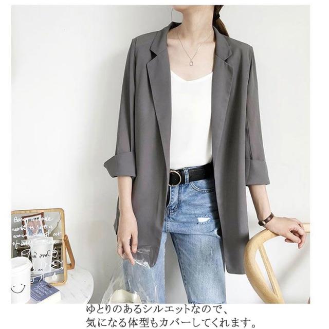 | 柔らかい素材を使用した薄手テーラードジャケット ゆとりのあるシルエットなので、気になる体型もカバーしてくれます。 手首の見える7分袖なのでブレスや腕時計などが映えやすい♪ すっきりした印象を与えて、通勤から週末コーデも相性抜群です。 春から初秋まで長いシーズンでご愛用いただけます。 オフィスカジュアルコーデは勿論のこと、普段使いで綺麗めコーデにも取り入れられるアイテムです。 | |