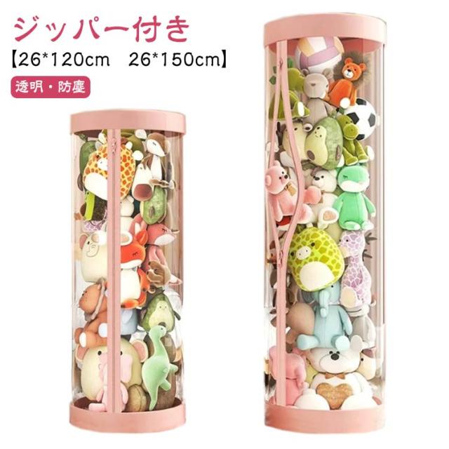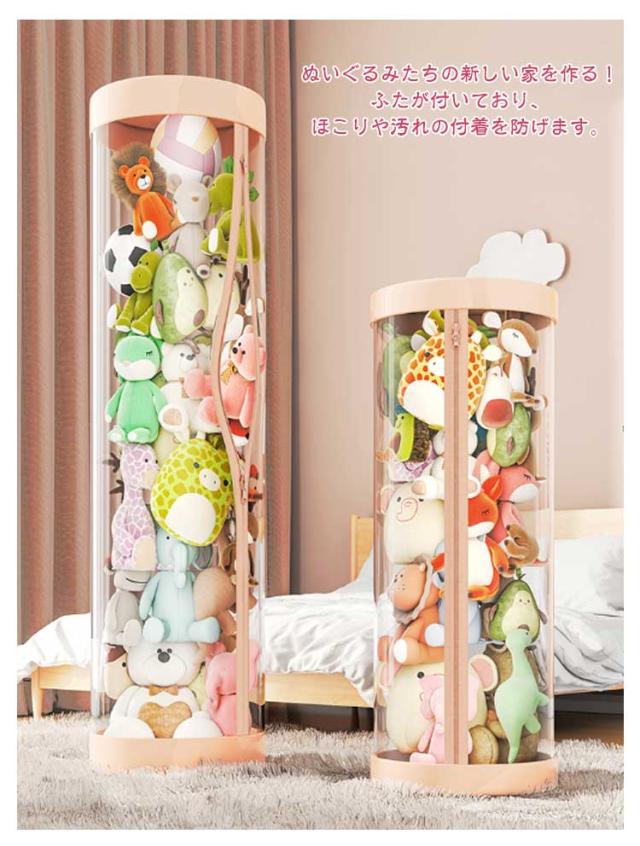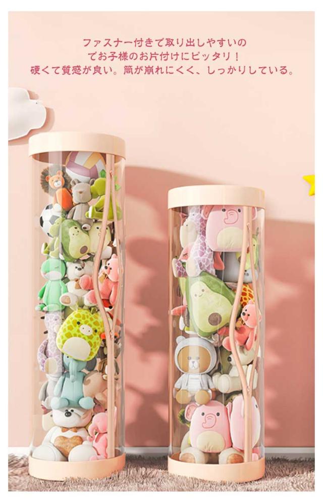 ぬいぐるみ収納ケース ジッパー付き ぬいぐるみ収納 円柱形 ぬいぐるみ収納 ケース 透明 ぬいぐるみ収納桶 大容量 陳列ケース 防塵 展示ボックス ぬいぐるみ収納ボックス 収納ケース ファスナー付き 取り出しやすい 簡単アクセス