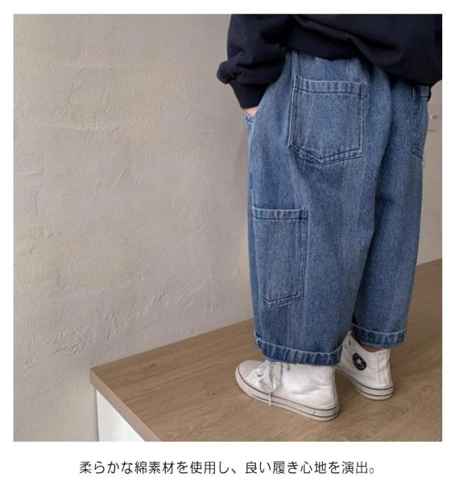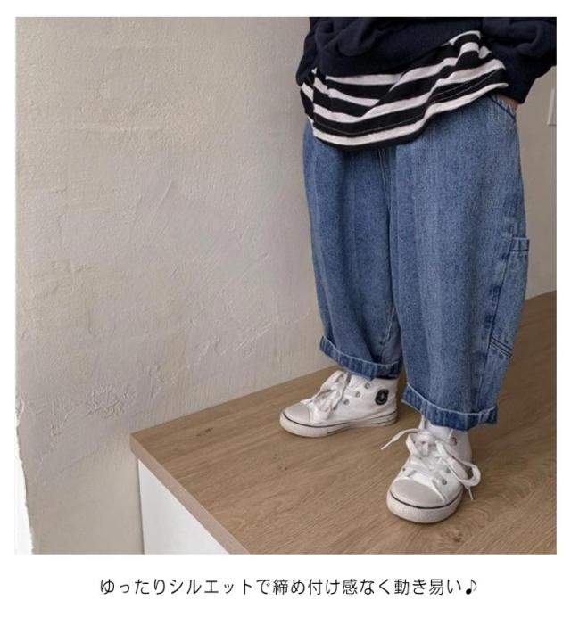 男の子 キッズ 九分丈 おしゃれ ワイドデニム デニムパンツ ゆったり ジーンズ サルエルパンツ キッズ 子供服 春 夏 女の子 ウエストゴム ボトムス お洒落 カジュアル ナチュラル