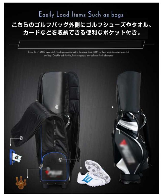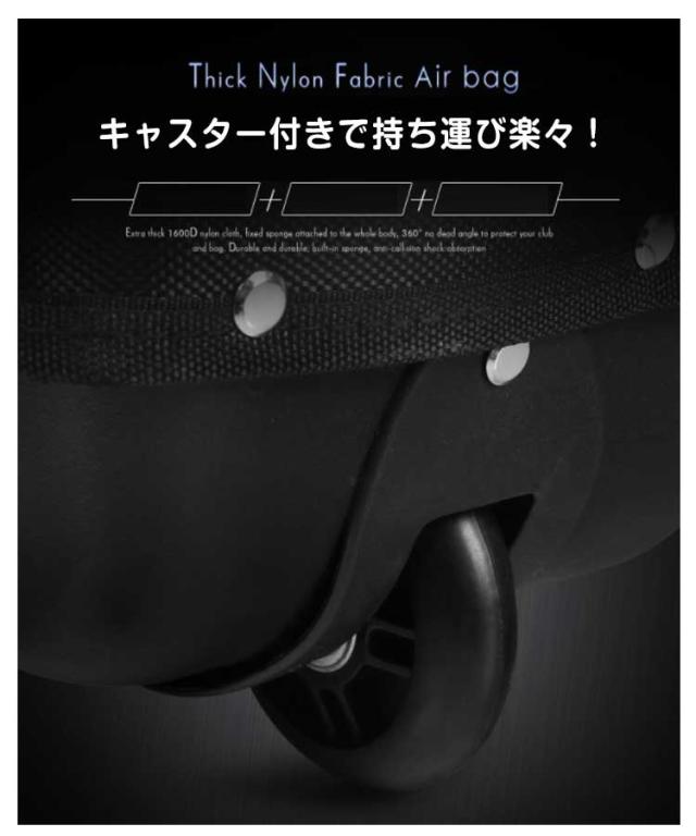 | 旅行などで輸送中のゴルフクラブを摩耗や損傷から保護できるゴルフトラベルカバー! キャスター付きで持ち運び楽々! 折り畳み可能、収納袋付きで省すベース。 こちらのゴルフバッグ外側にゴルフシューズやタオル、カードなどを収納できる便利なポケット付き。 | |