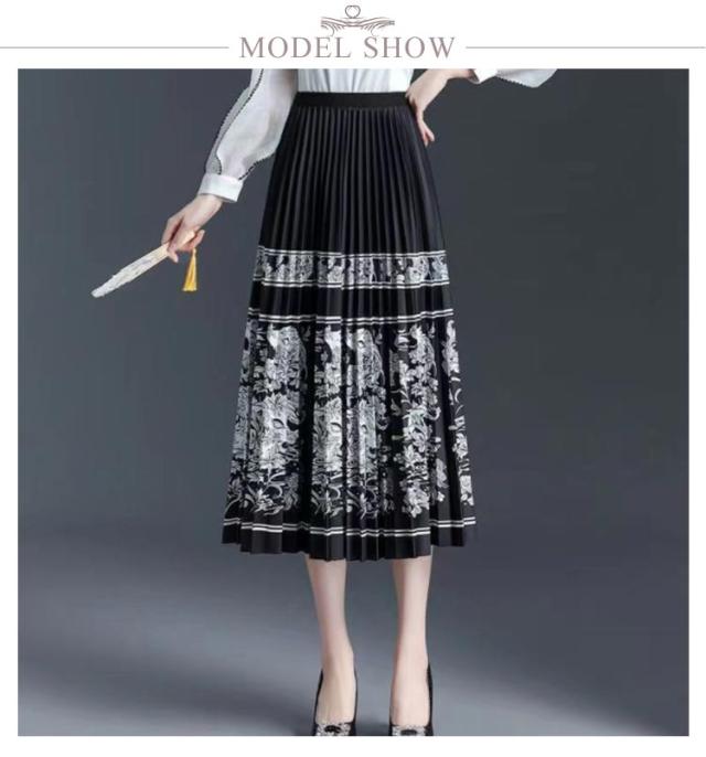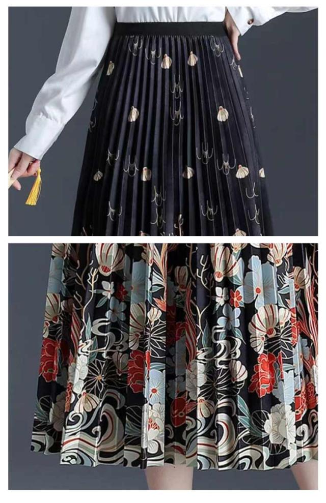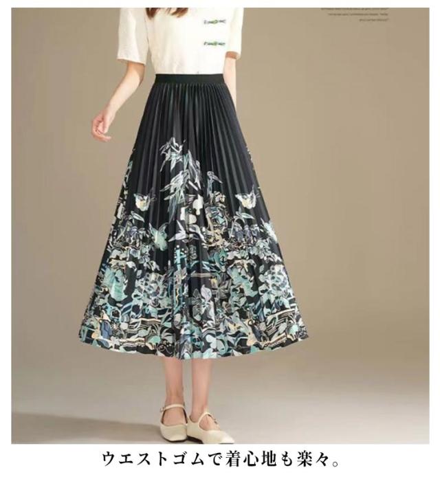 プリーツスカート フレアスカート ウエストゴム ロングスカート 柄 エスニック フラワー プリントスカート キレイめ Aライン 総柄 大人 プリーツスカート 上品 エレガント フリーサイズ 高級感 落ち感 揺れ感