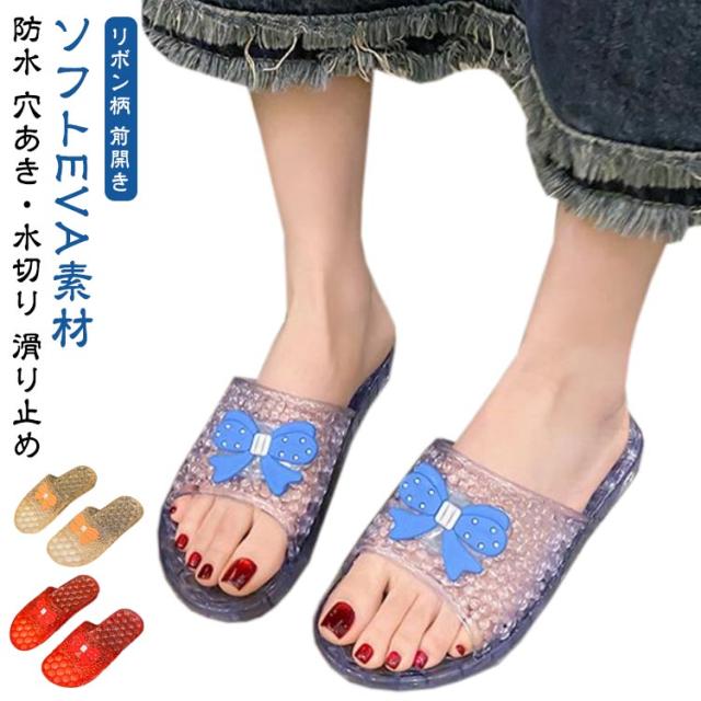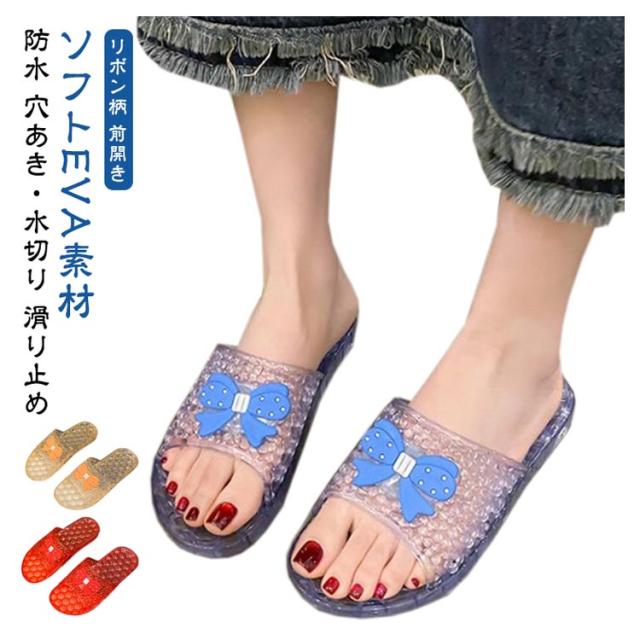 前開き 凸凹 かわいい リボン柄 メンズ クリアサンダル シャワーサンダル バススリッパ レディース 靴 ユニセックス 送料無料 送料無料 フラットソール ぺたんこ 滑りにくい お風呂場 バスルーム ベランダ 浴室用 防水 トイレ おしゃれ キュート カラバリ豊富