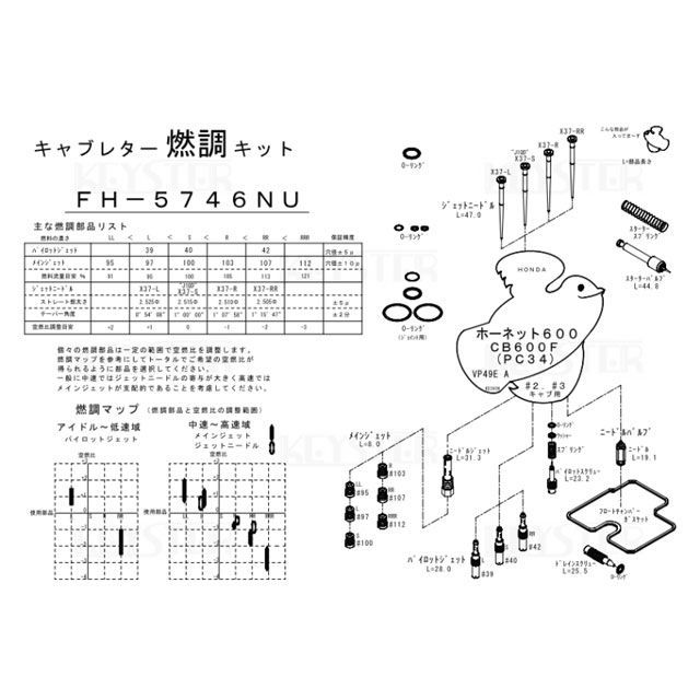 キースター ホーネット600/CB600F 燃調キット ホーネット600/CB600F(PC34)/インサイドキャブ#2#3用キャブレター オーバー…