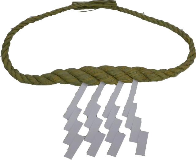 神社の鳥居などに飾るタイプの中心が太い注連縄です。