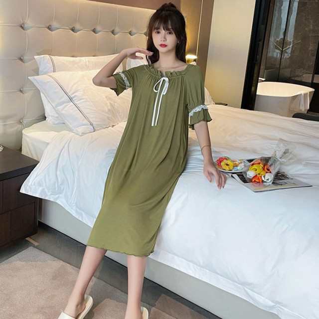 ネグリジェ 春夏秋 姫 ネグリジェ ワンピース レースネグリジェ 半袖ネグリジェ 大人可愛い部屋着 ロング丈 オシャレゆったり モダール綿パジャマ レディース