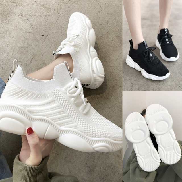 スニーカー シューズ レディース 黒 白 靴 レディース スニーカー 激安 おしゃれ ハイカット 厚底 可愛い スポーツシューズ カジュアルシューズ スポーツスニーカー ショート カジュアル かわいい クマ メッシュ 春 秋 韓国 新品 送料無料 ブラック ホワイト 定番 無地 美脚 脚長 db0293