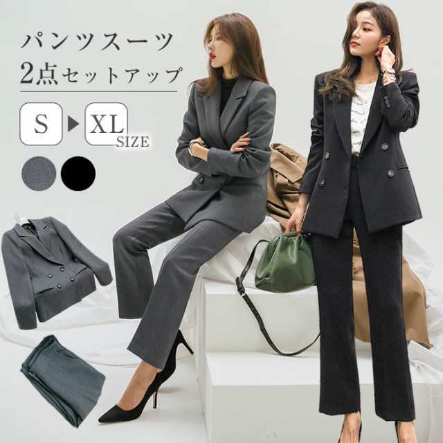 スーツ レディース 春 パンツスーツ ストレッチ 長袖 ロング丈 選べる 洗える セットアップ ビジネススーツ リクルート オールシーズン対応 通勤 OL 黒 2色 グレー おしゃれ
