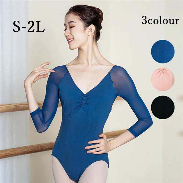 バレエレオタード 大人用 バレエ用レオタード Vネック バレエ衣装 練習衣装 袖あり ダンス レオタード レッスン着 ジュニア dm014x2x2s3