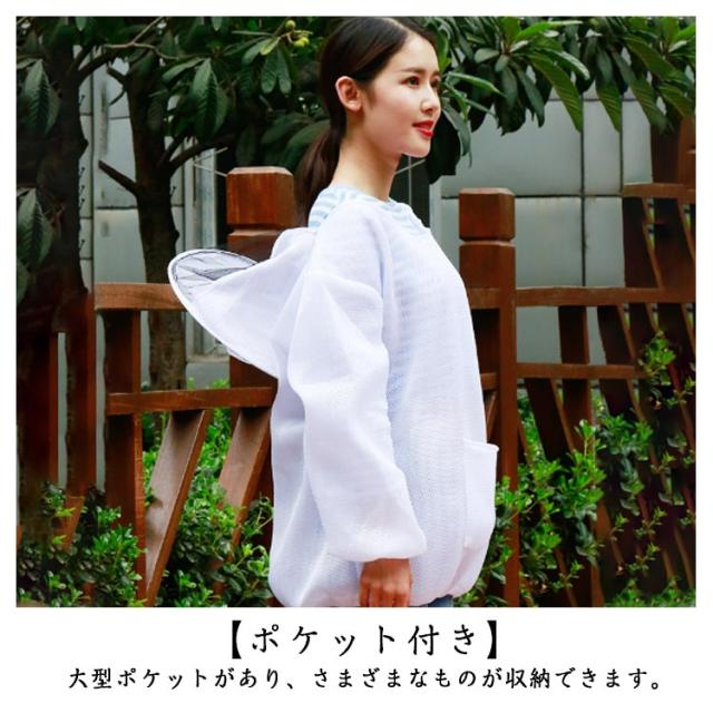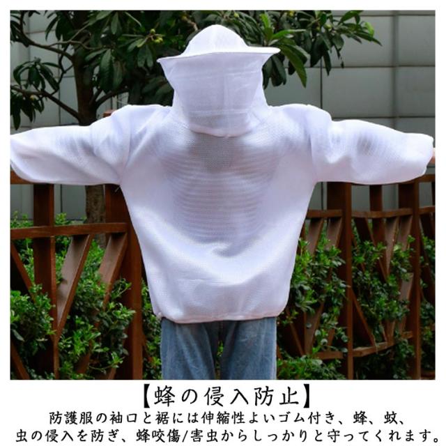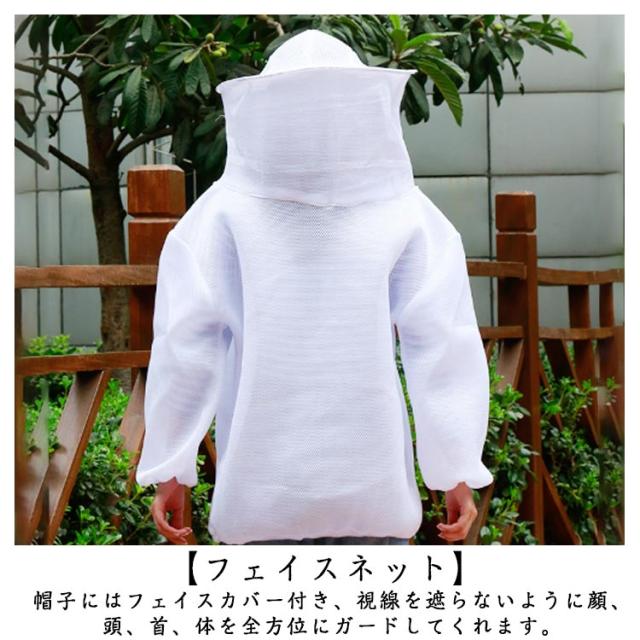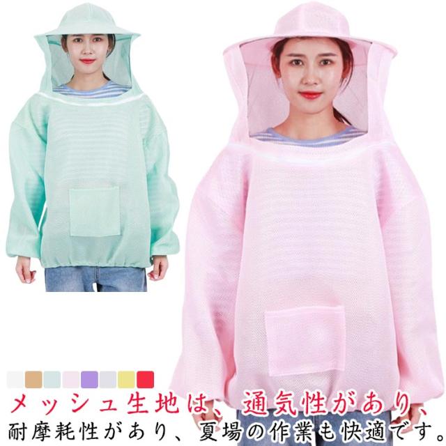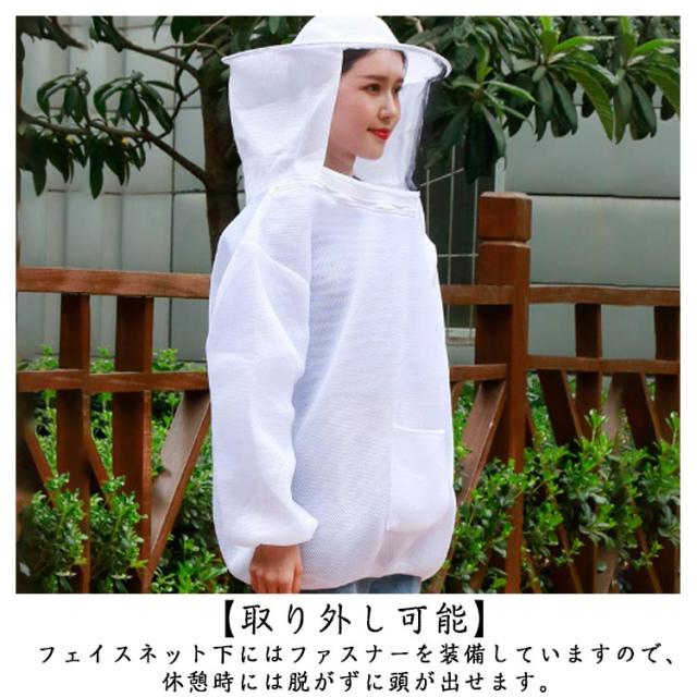 養蜂保護 男女兼用 養蜂服 上着 防護服 虫よけ 帽子付き メッシュ 作業服 通気性 ガーデニング 園芸 草刈り 蚊よけ メッシュパーカー 脱着簡単 毒虫対策 保護用 虫除け 防護服 農業作用 フェイスネット付き