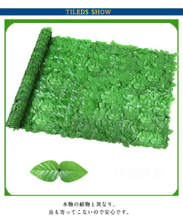 | 爽やかでおしやれに目隠! 本物の植物と異なり、虫の心配もありません。 グリーンフェンスは枯れる心配も要らず、お手入れもほぼ不要です。 イミテーションなので面倒な水やり、お手入れも不要。 本物の植物と異なり、虫も寄ってこないので安心です。 通気性抜群で爽やかな風が通り抜けます。 環境にやさしく、臭いのないのプラスチックで作られたリーフグリーンフェンス。 高温と低温に耐え。 また、土を必要としないので、お庭だけではなくベランダにも施工できます。 | |