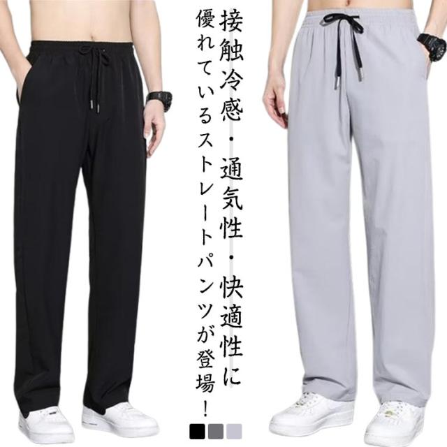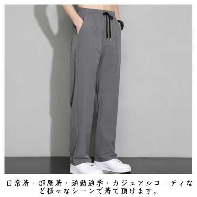 ワイドパンツ ボトムス 夏服 アイスシルク 接触冷感 スポーツ ズボン 涼しい ロングパンツ ゆったり ワイドパンツ ストレート スウェットパンツ カジュアル ストレッチ性 大きいサイズ 無地 調整紐 送料無料