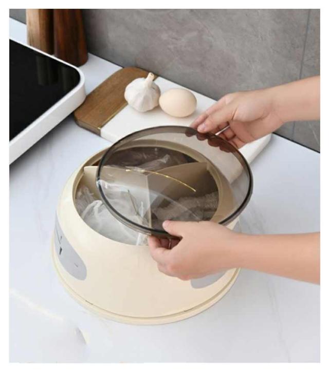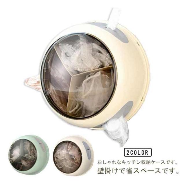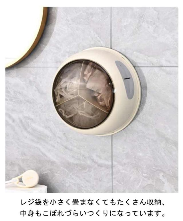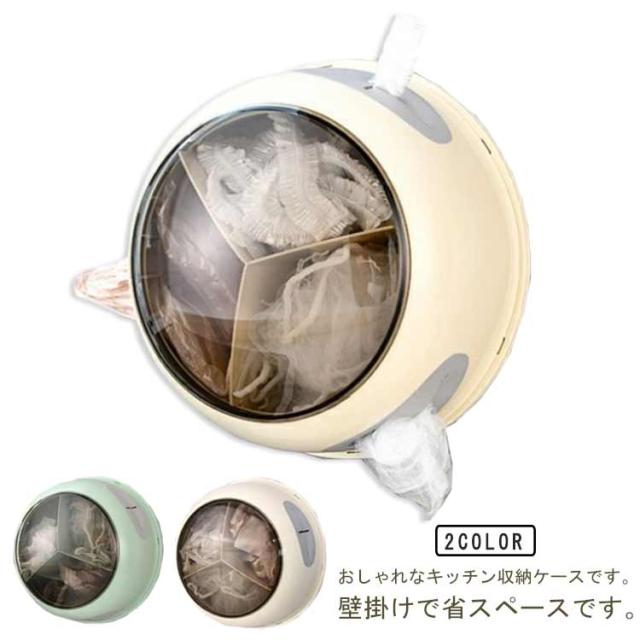 キッチン収納ケース 仕切り キッチン用 収納ボックス 3格 キッチン収納ケース 2色 取り出しやすい 保存袋 壁掛け収納 保存カバー 壁掛け 360度回転 便利グッズ レジ袋 ビニール袋付き 丸型 レジ袋ホルダー 収納ケース