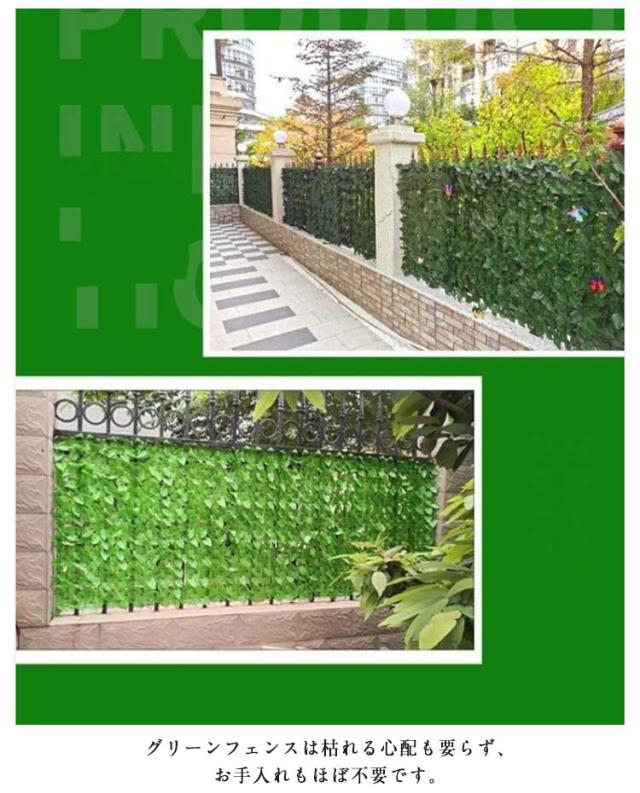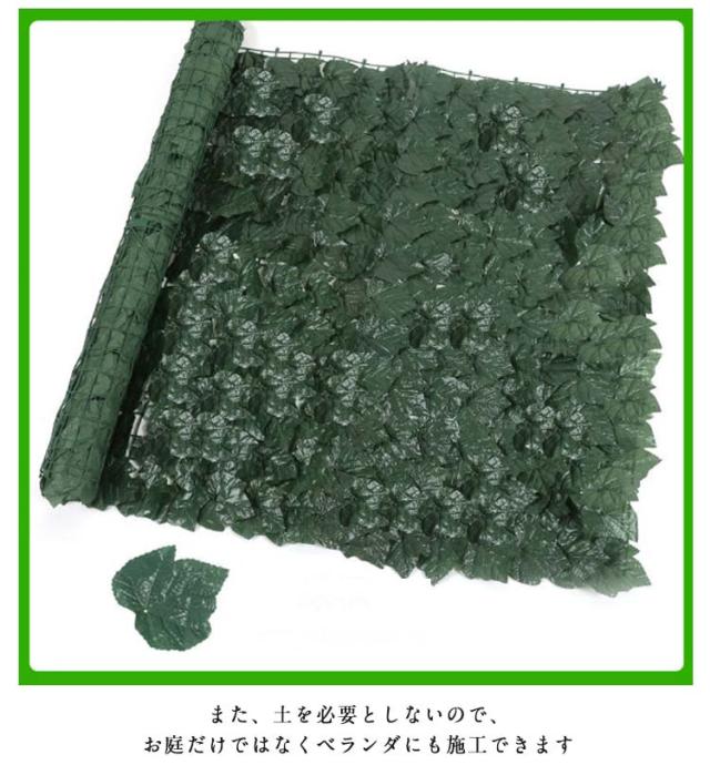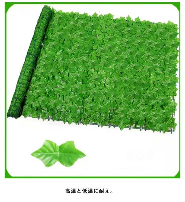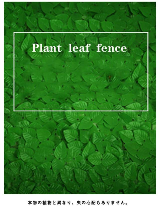 | 爽やかでおしやれに目隠! 本物の植物と異なり、虫の心配もありません。 グリーンフェンスは枯れる心配も要らず、お手入れもほぼ不要です。 イミテーションなので面倒な水やり、お手入れも不要。 本物の植物と異なり、虫も寄ってこないので安心です。 通気性抜群で爽やかな風が通り抜けます。 環境にやさしく、臭いのないのプラスチックで作られたリーフグリーンフェンス。 高温と低温に耐え。 また、土を必要としないので、お庭だけではなくベランダにも施工できます。 | |
