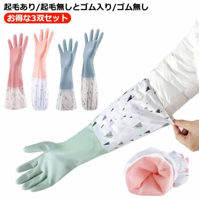 食器洗い 3双セット ゴム手袋 ロング ゴム手袋 掃除 厚手 キッチングローブ 長い 暖かい ゴム手袋 グローブ 肘ゴム付き キッチン ロング かわいい おしゃれ 作業用 ロンググローブ ロングスリーブ 丈が長い 風呂掃除