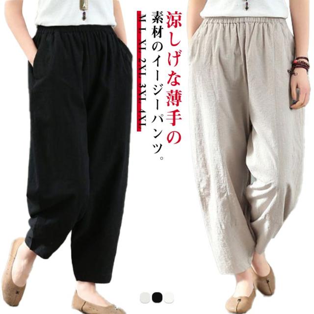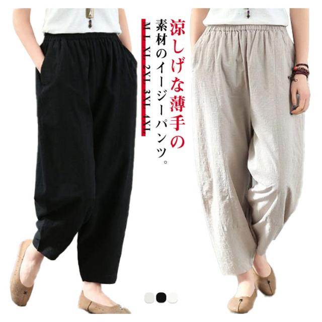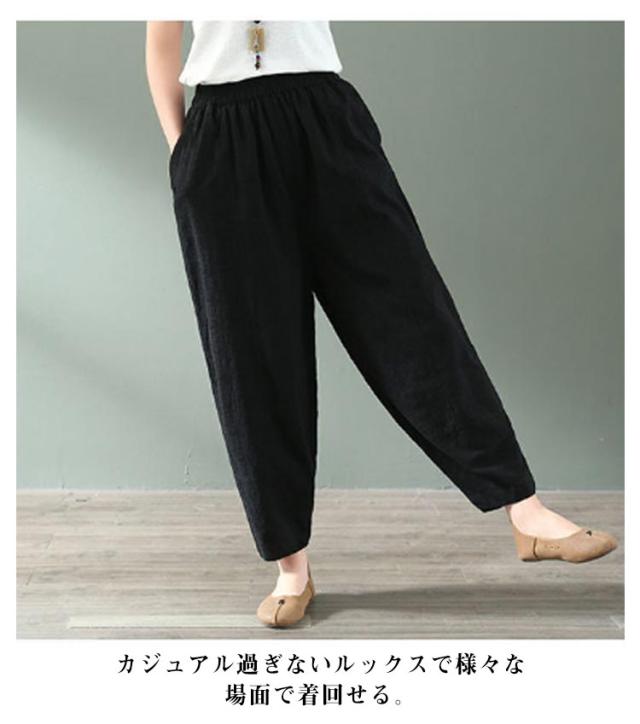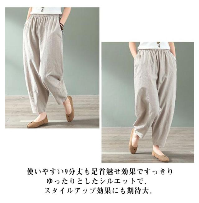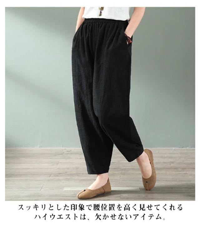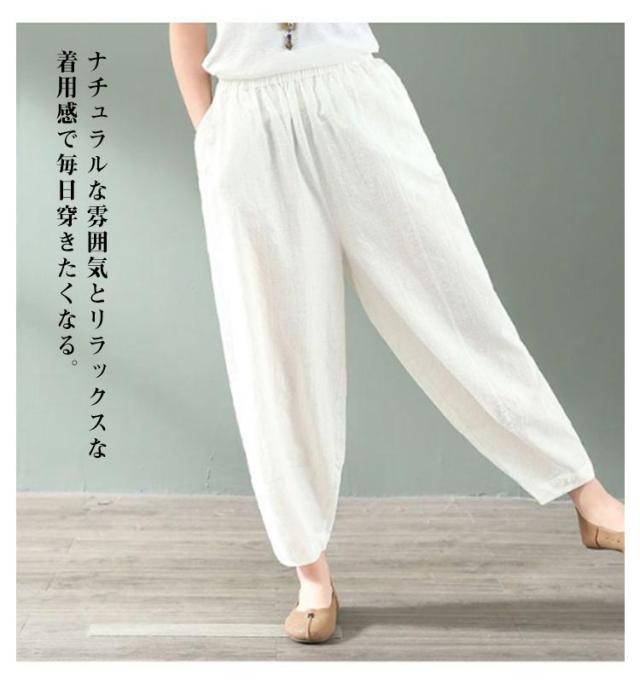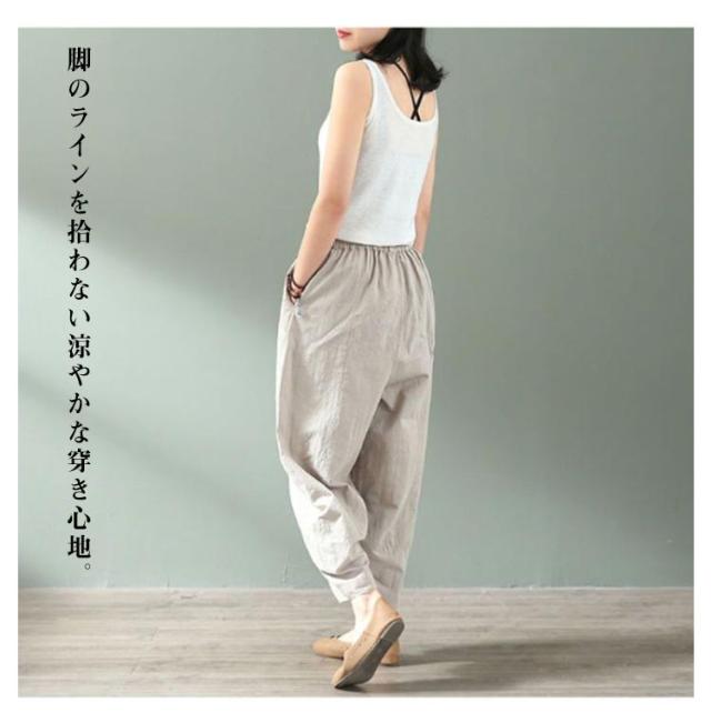 レディース サルエルパンツ 大きいサイズ 夏 リネンパンツ バルーンパンツ サーカスパンツ ワイドパンツ 麻 リネン コクーンパンツ ナチュラル カジュアル パンツ ボトムス ゆったり ウエストゴム ゆるパンツ 無地 楽ちん 着痩せ