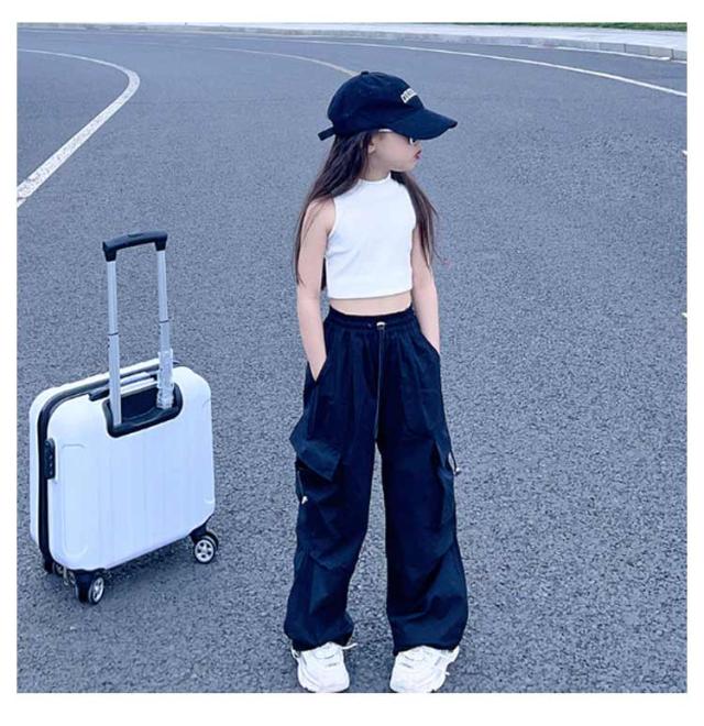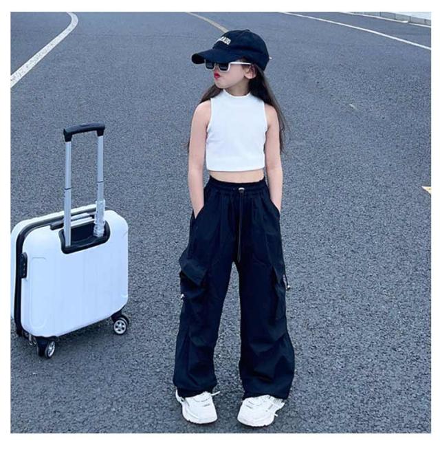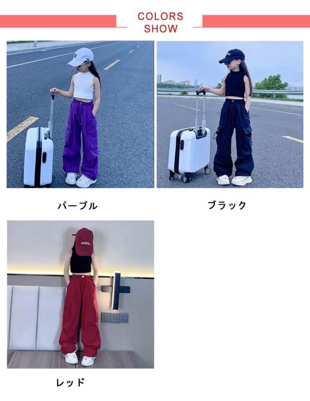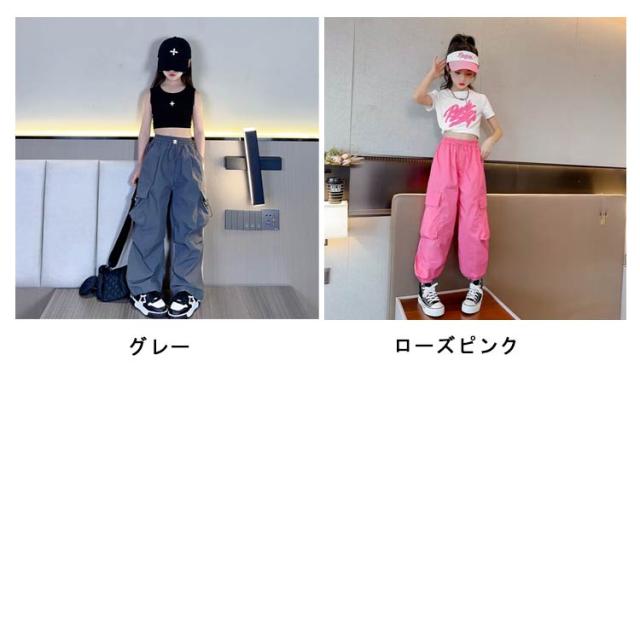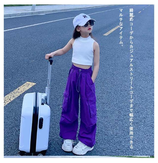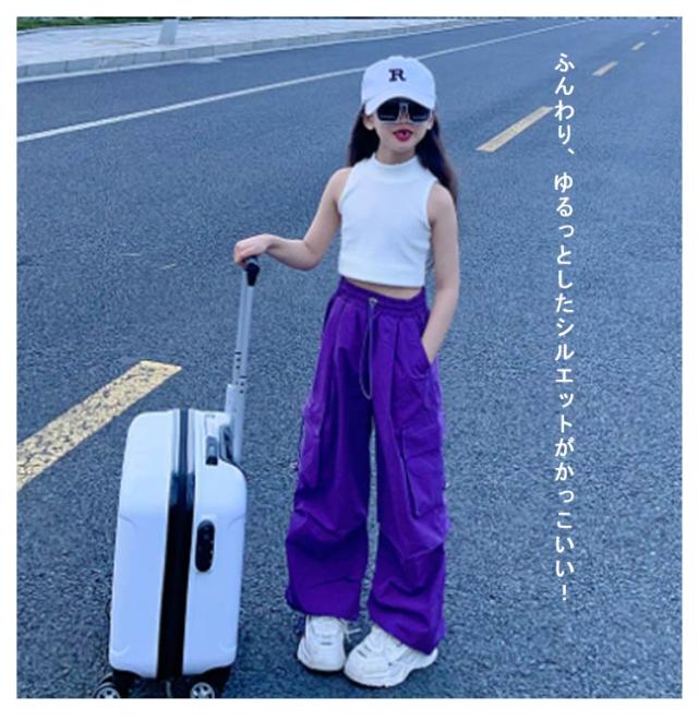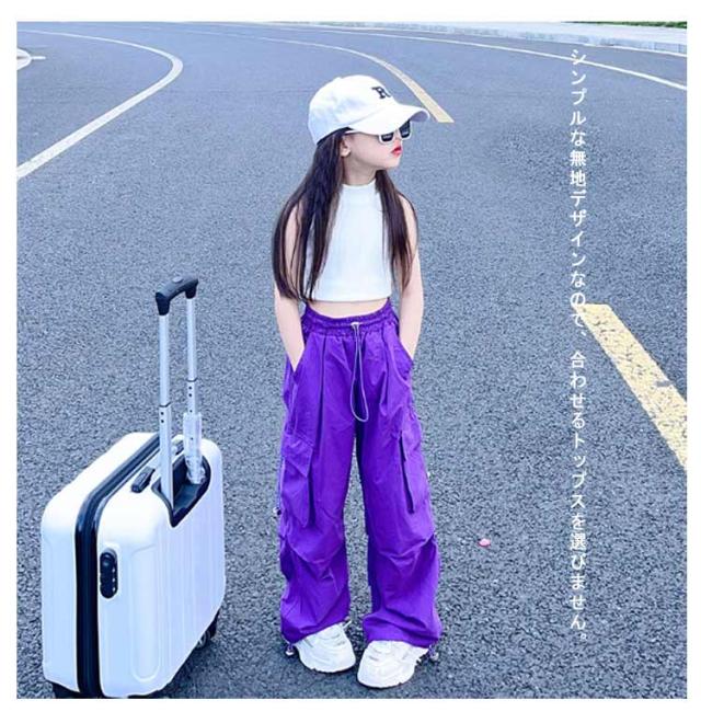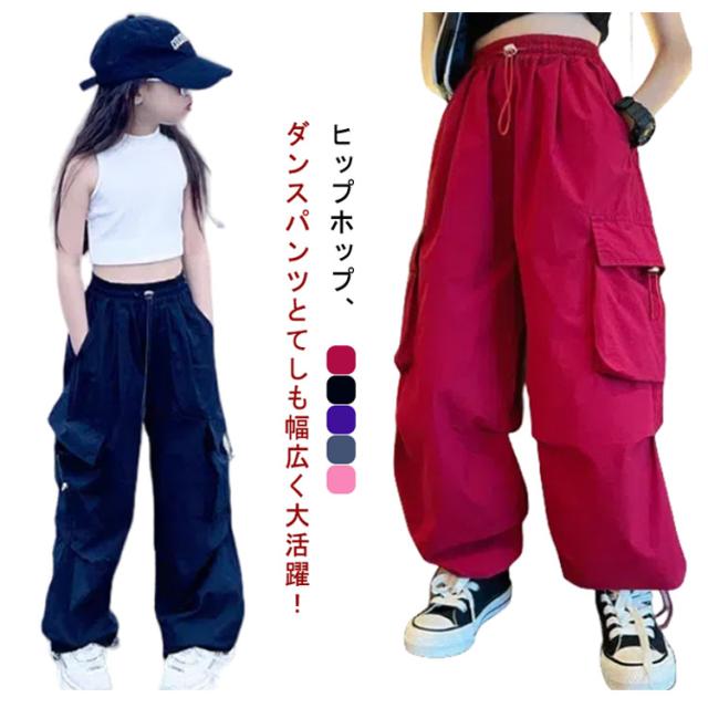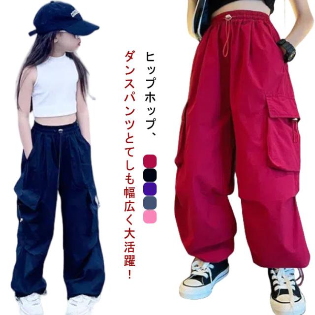 カーゴパンツ ジュニア ゆったり カーゴパンツ ロングパンツ 白 ダンスウェア ワイドパンツ 女の子 キッズ 通気性 カジュアル ヒップホップダンス衣装 学生 110 紫 長ズボン 黒 赤 ピンク 無地 120 130 140 150 160