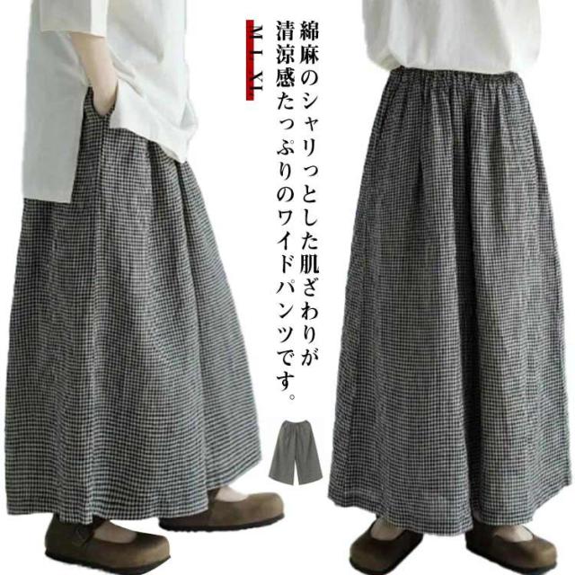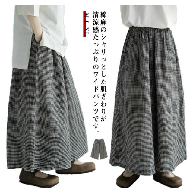 ガウチョパンツ ワイド ワイドパンツ スカーチョ きれいめ パンツ イージーパンツ 綿麻 ガウチョパンツ リネン ゆったり スカンツ ウェストゴム 女性 体型カバーリラックス きれいめ 美脚 おしゃれ 普段着 出かけ