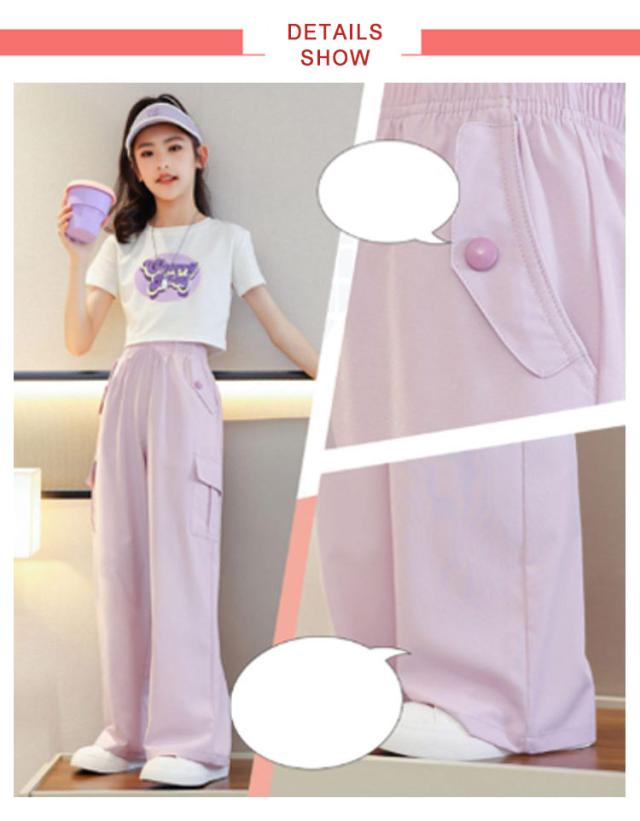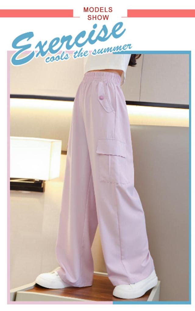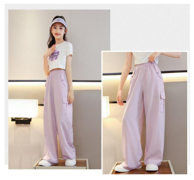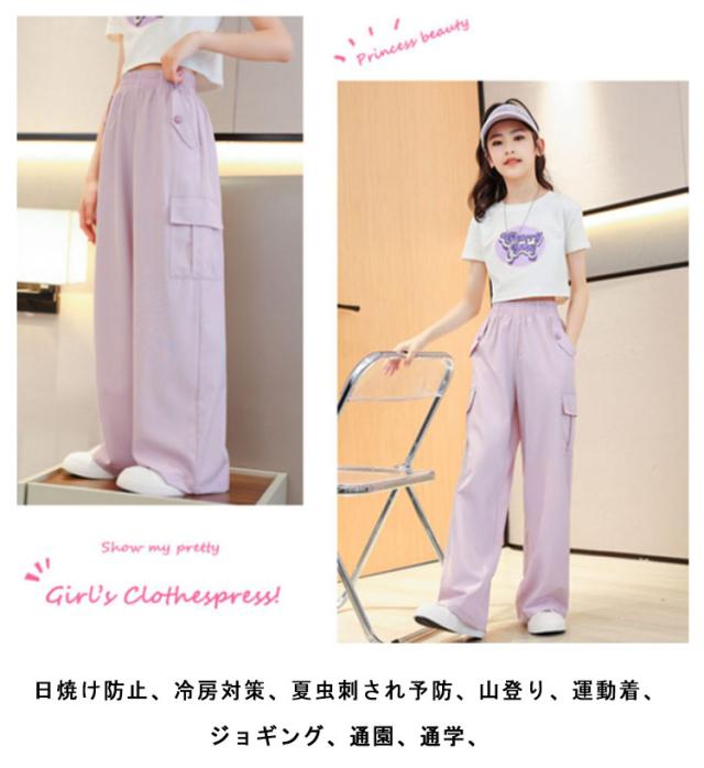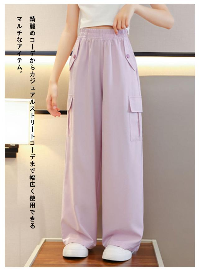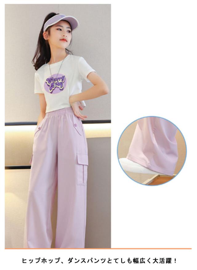 女の子 カーゴパンツ 韓国 ワイドパンツ ガールズ 子供服 ロングパンツ 長ズボン アイスシルク ヒップホップ キッズ ジュニア ボトムス ダンス衣装 紫 子ども服 カジュアル HIPHOP パープル キッズ 120 130 140 150 160