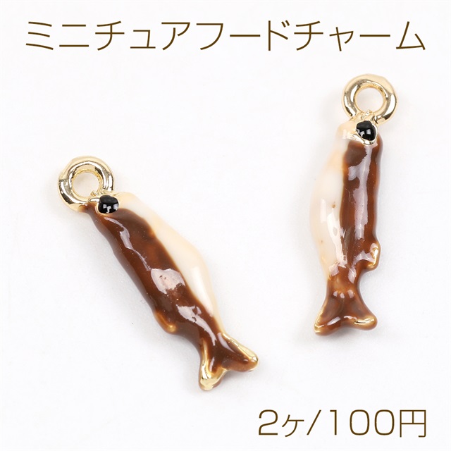 ミニチュアフードチャーム メタル製 食品サンプルチャーム フェイクフードチャーム 魚 1カン付き ゴールド 5×18mm(2ヶ)