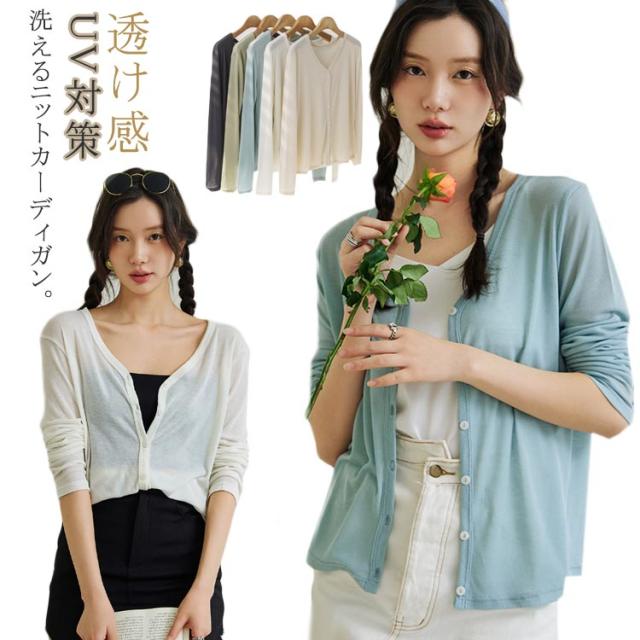 カーディガン トップス 冷房対策 薄手 ニット カジュアル Vネック ニットカーディガン ニットカーデ サマーカーディガン 長袖 透け感 春 カーディガン UV対策 レディース ナチュラル 羽織り シンプル 無地 通勤 通学 おしゃれ 柔らかい