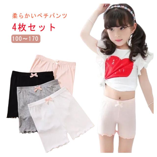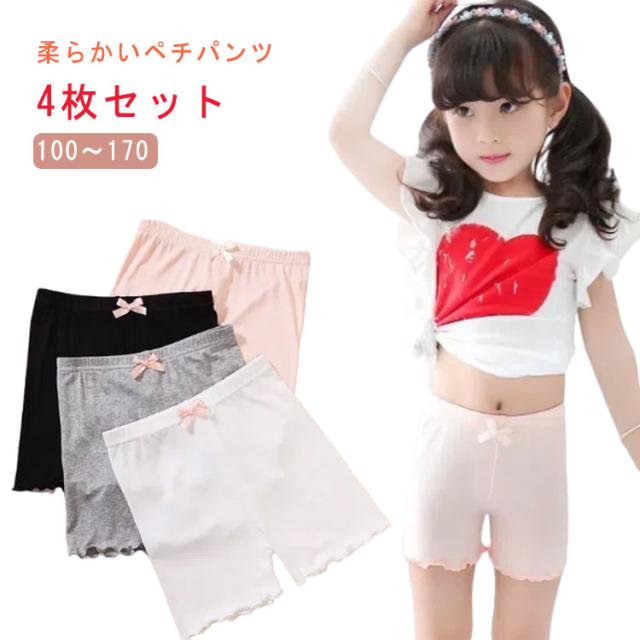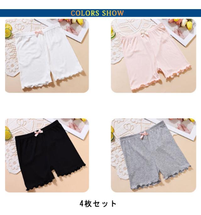 ペチコート 女の子スパッツ 女子服 3分丈 子供 下着 オーバーパンツ ショーツ インナーウエア 4枚セット キッズ ジュニア 子どもファッション ショートパンツ スパッツ 女の子 ペチパンツ 無地 かわいい 薄手 通園 通学 送料無料