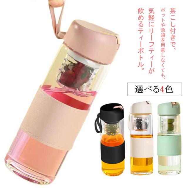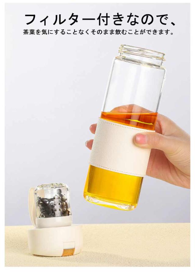 直飲み 漏れ防止 水筒 茶こし付き 耐熱ガラス お茶 携帯便利 ガラス 男女兼用 大容量 ウォーターボトル 450ml 耐冷 軽量 クリアボトル 大容量 ウォーターボトル フィルター付き 茶漉し ガラスボトル オフィス 外出