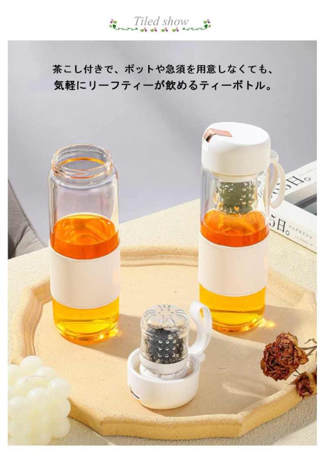 | 茶こし付きで、ポットや急須を用意しなくても、気軽にリーフティーが飲めるティーボトル。 男女兼用、飽きのこないシンプルでお洒落なウォーターボトル。 透明性・耐熱性のあるガラス製で、丈夫で軽く、お好みの水出し茶を作り持ち運びできます。 フィルター付きなので、茶葉を気にすることなくそのまま飲むことができます。 ドリンクを持ち運ぶだけじゃなく、いろんな便利な使い方ができるアイテムなので、アウトドアシーンやスポーツシーンをより楽しませてくれます。 | |