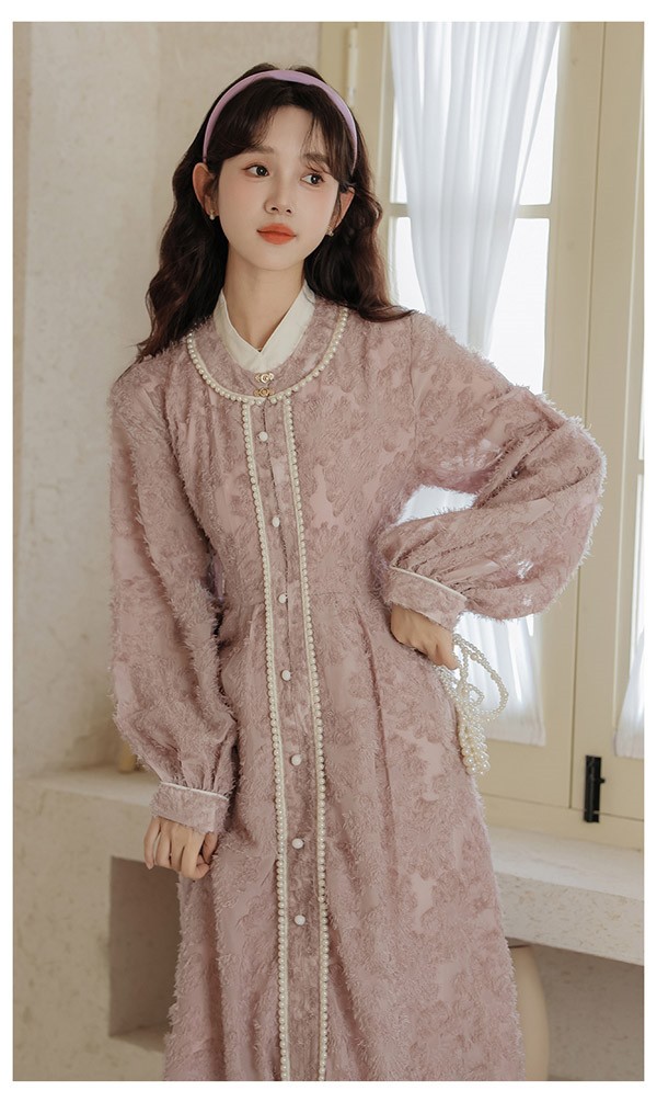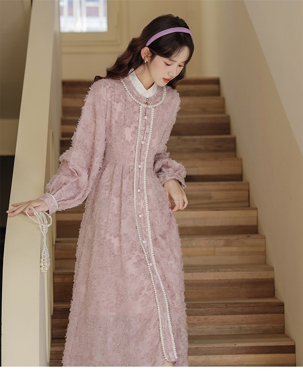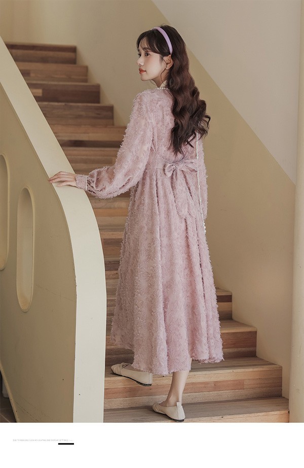 【商品名】レディースドレスロング丈袖付き春秋 ワンピース 二次会 女子会 成人式 おしゃれ 可愛い ロングワンピース ゆったり パーティードレス 大人可愛い着痩せる