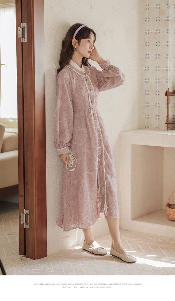 レディースドレスロング丈袖付き春秋 ワンピース 二次会 女子会 成人式 おしゃれ 可愛い ロングワンピース ゆったり パーティードレス 大人可愛い着痩せる