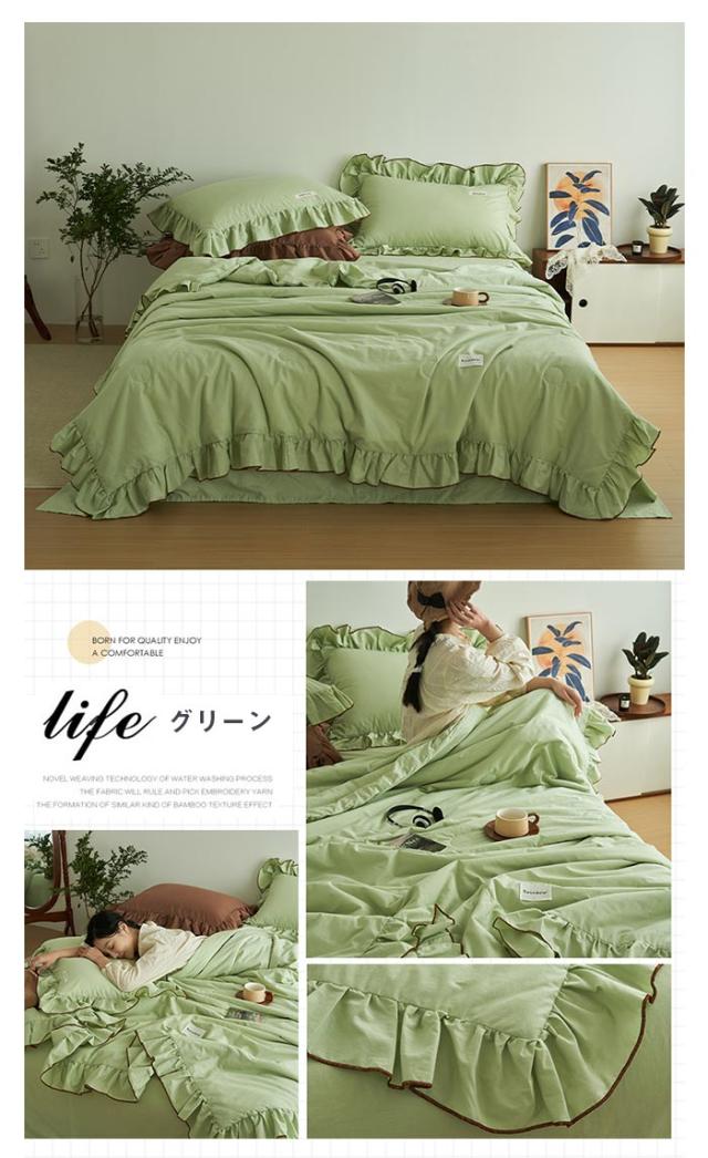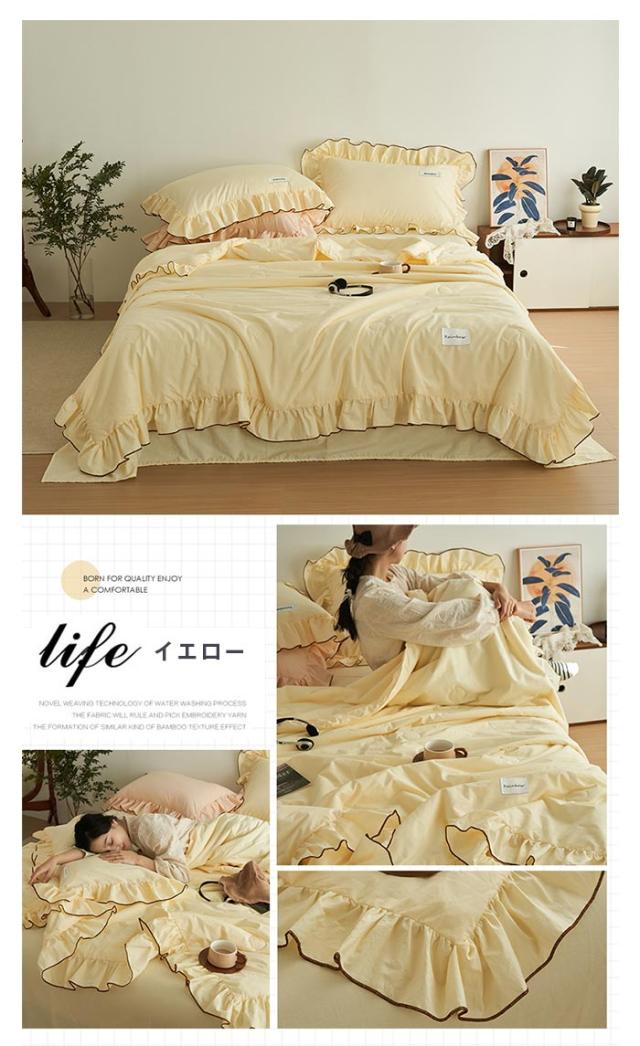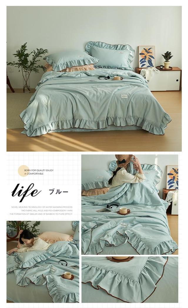 フリル付き 夏布団 肌掛け布団 3点セット 枕カバー付き 水洗い加工 夏用掛け布団 キング 200×230cm 肌布団 キルトケット 洗える 夏掛け布団 カバー不要 可愛い プリンセス風 冷房対策 抗菌防臭 防ダニ 春夏 寝具