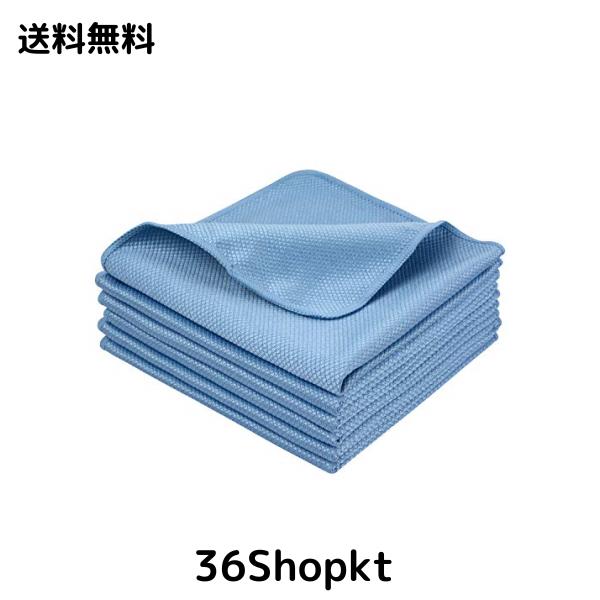 SINLAND 吸水速乾マイクロファイバーガラス拭きクロス グラスクロス キッチン食器拭きクリーニングタオル 洗車タオル 掃除クロス6枚 (ブ
